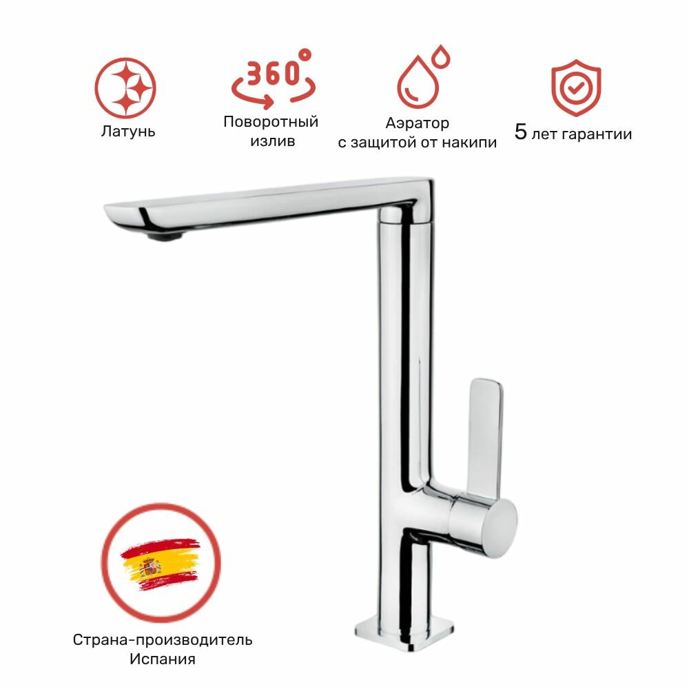 аэратор, поворотный излив, Гибкая подводка, Глянцевая, Поворотный