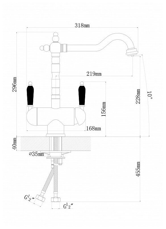Длинный, Совмещенный излив для питьевой воды, традиционный