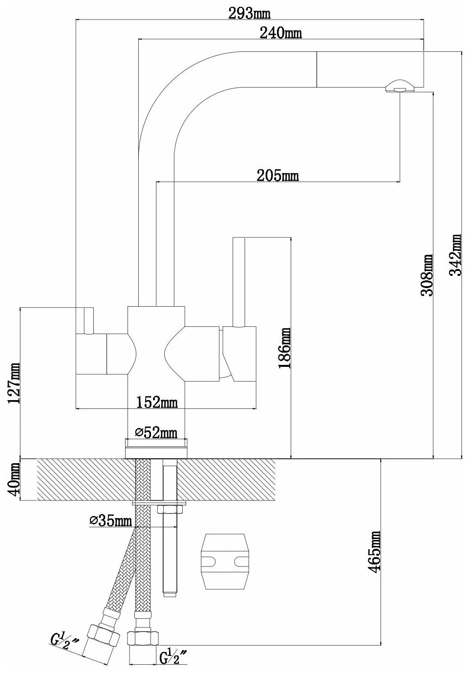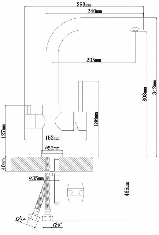 аэратор, встроенный фильтр, поворотный излив, Гибкая подводка, Лейка, С краном для питьевой воды, возможность подключения фильтра, выдвижной излив