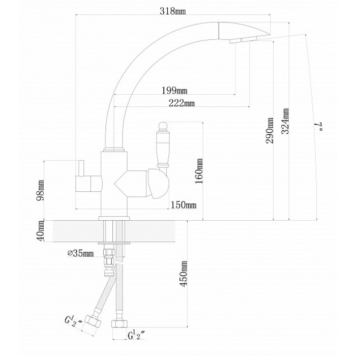 Длинный, Совмещенный излив для питьевой воды, традиционный