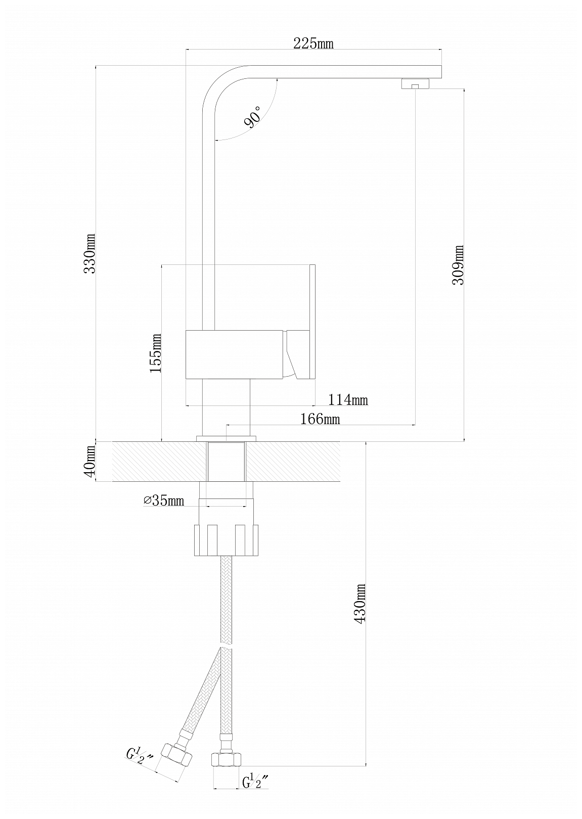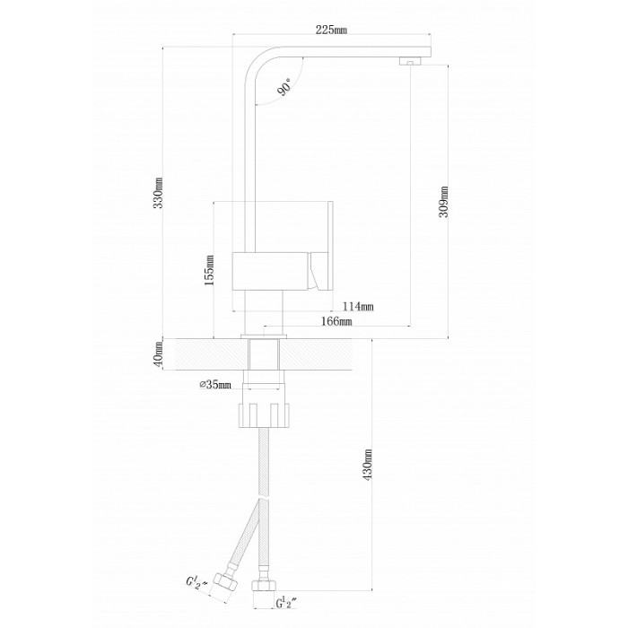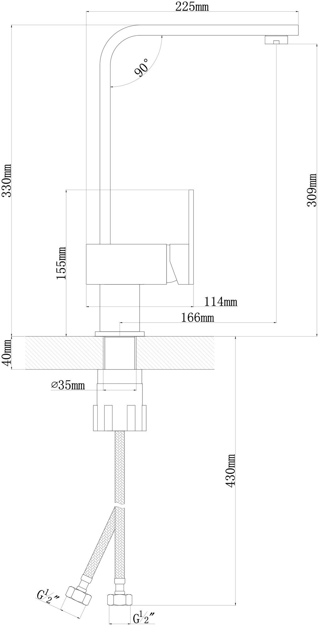 аэратор, встроенный фильтр, поворотный излив, Гибкая подводка
