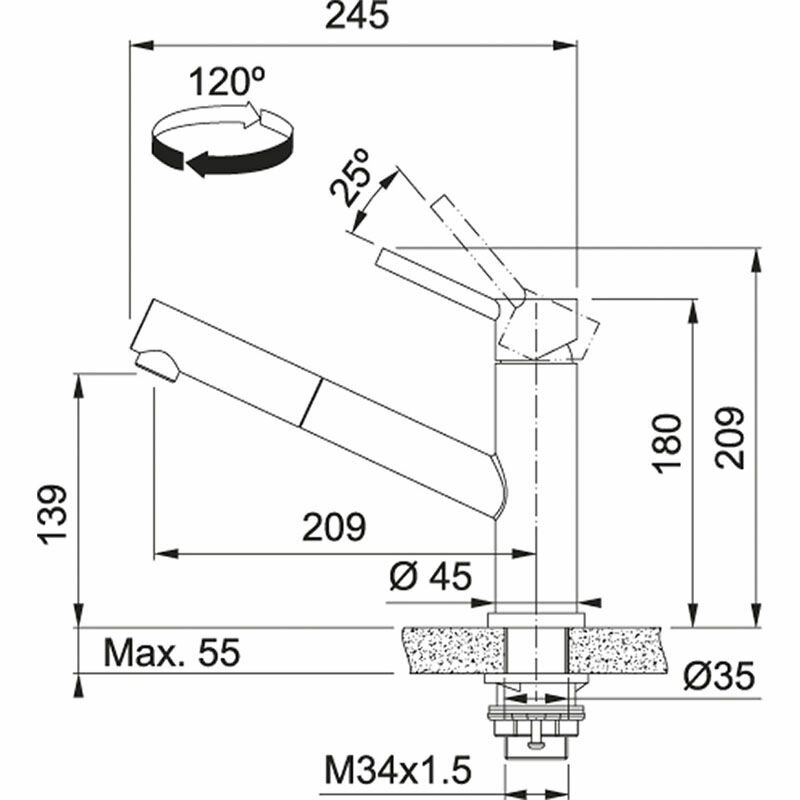 материал выдвижного шланга - нейлон, материал лейки - пластик, тип аэратора - ламинарный поток, длина шланга подачи воды - 45 см, тип фиксации - хвостовик