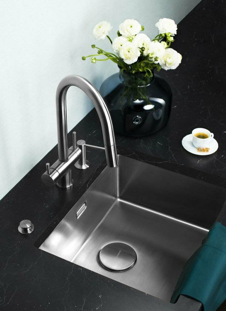- Первый смеситель в категории 3 в 1: функция подачи холодной/горячей воды, возможность подключения фильтра для очистки и наличие вытяжного шланга;