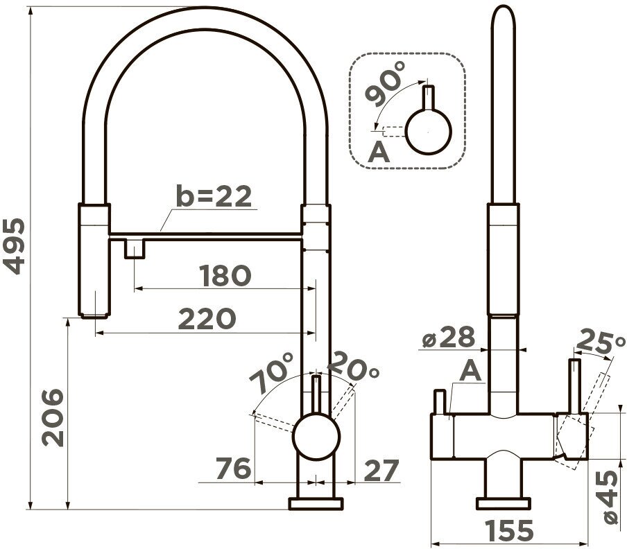 гибкий, поворотный, Совмещенный излив для питьевой воды