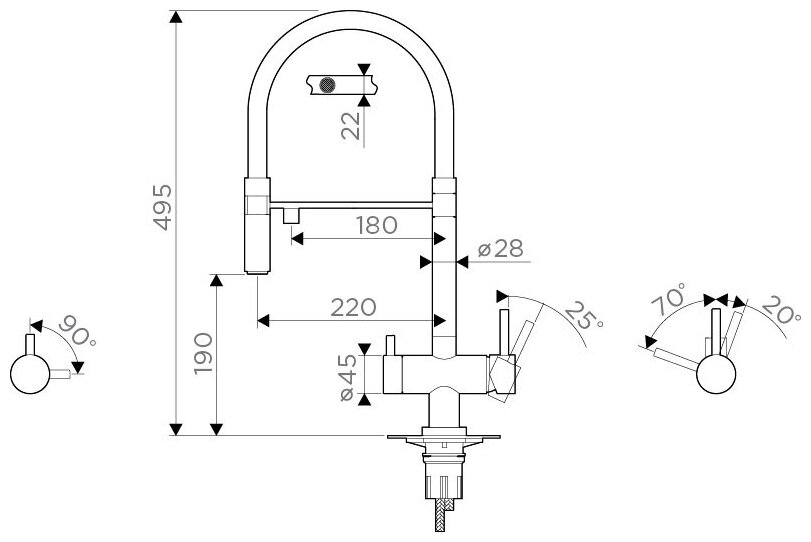аэратор, Гибкая подводка, Поворотный, С краном для питьевой воды