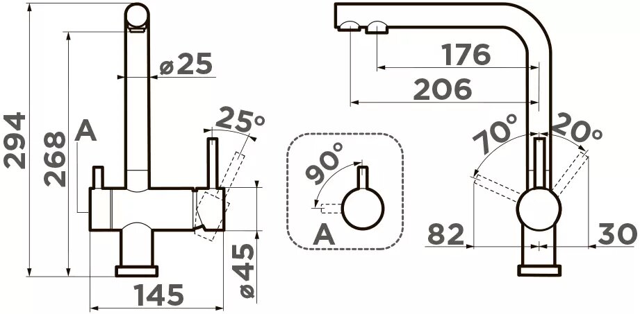 аэратор, поворотный излив, встроенный кран для питьевой воды
