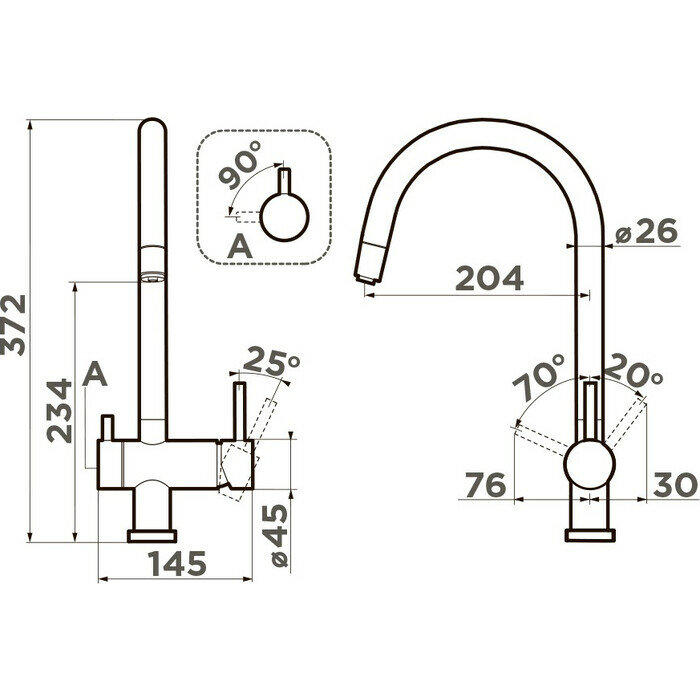 аэратор, поворотный излив, система быстрого монтажа, встроенный кран для питьевой воды