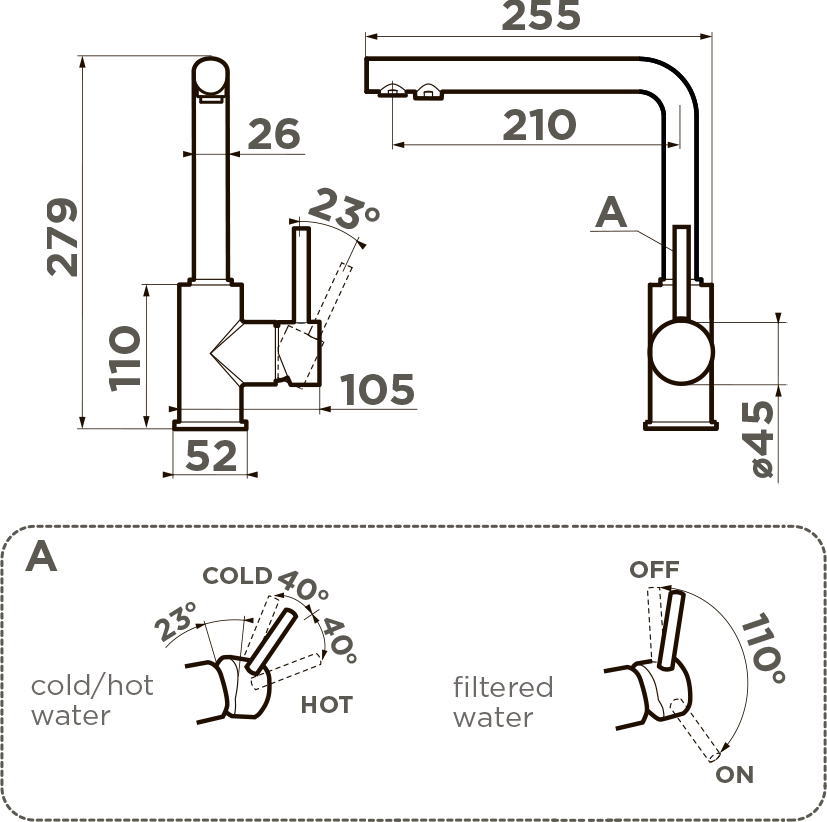 аэратор, поворотный излив, система быстрого монтажа, встроенный кран для питьевой воды, система рычага 2 в 1 Multi