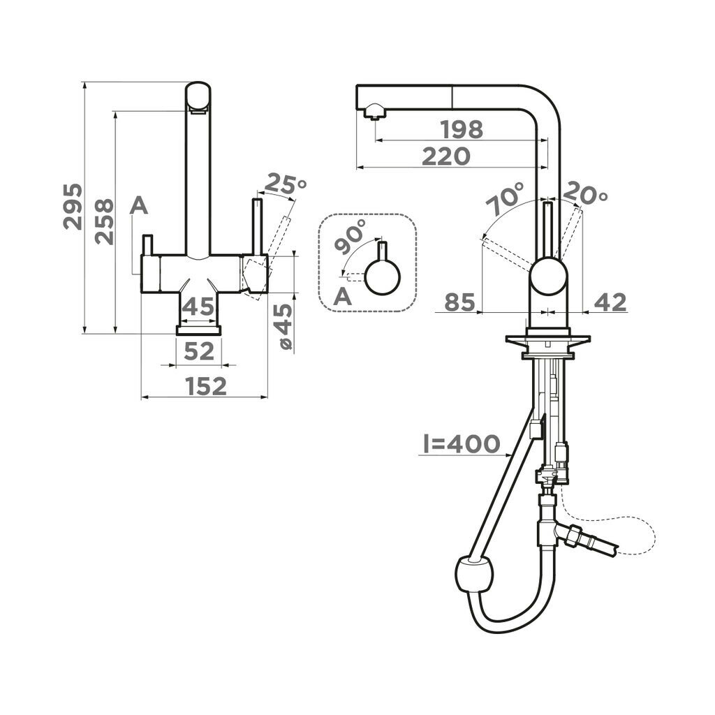 аэратор, поворотный излив, ПоворотныйС фильтром для питьевой водыГибкая подводкаАэратор