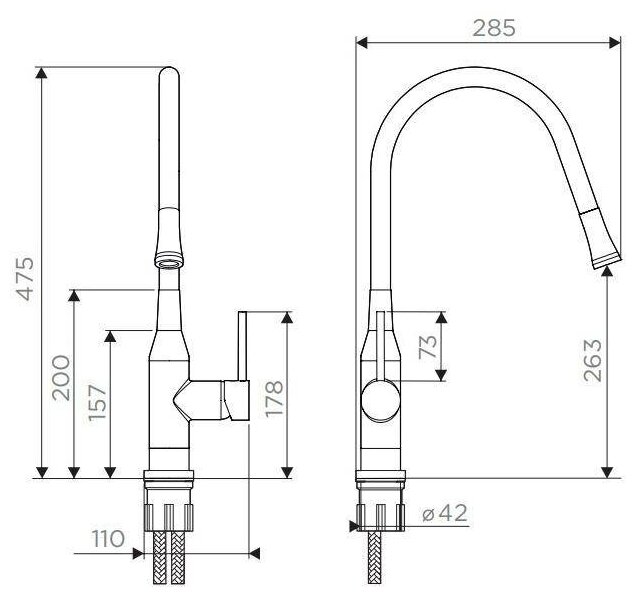 угол поворота ручки может отличаться в зависимости от партии, гибкий шланг