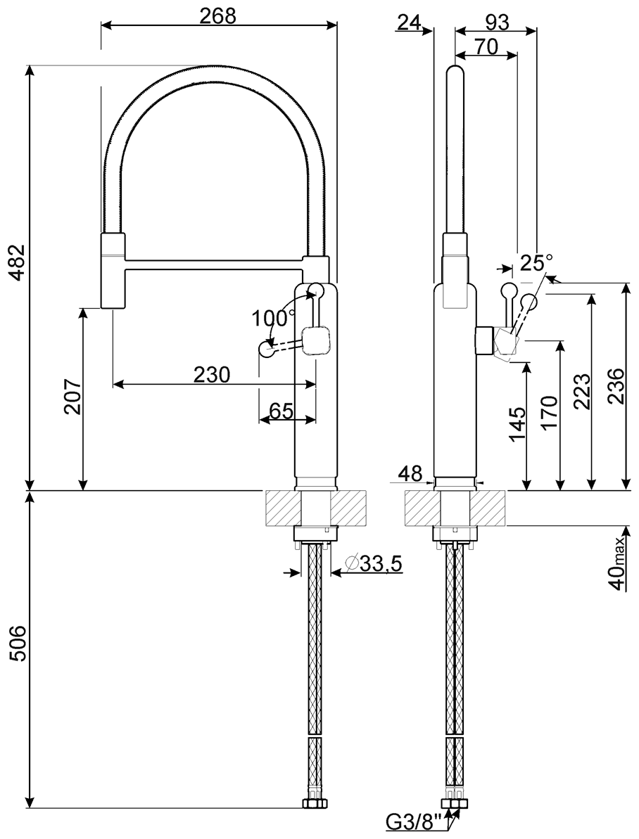 S-образные эксцентрики, аэратор, встроенный фильтр, поворотный излив