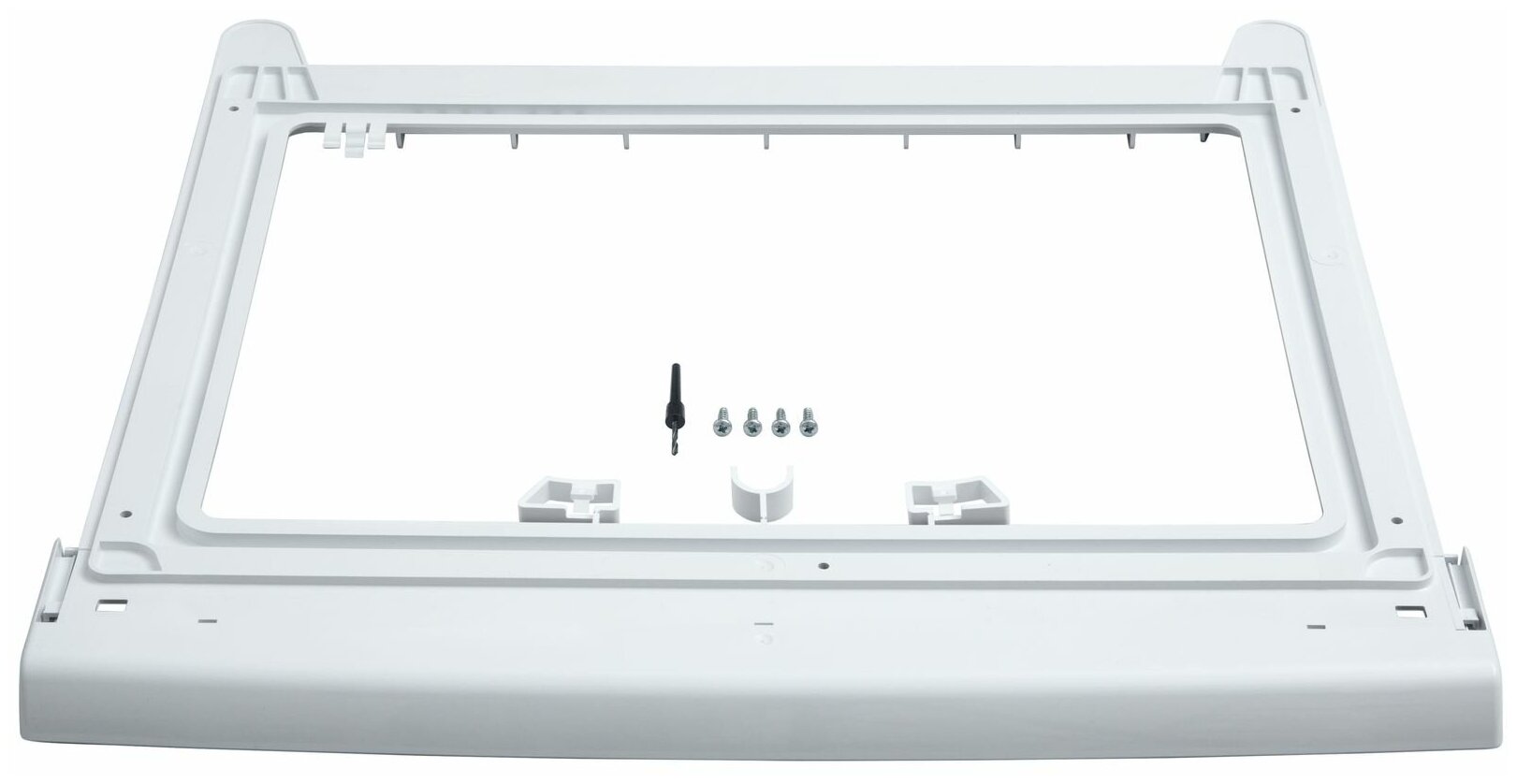 Соединительный элемент для монтажа стиральной и сушильной машины в колонну. Без выдвижной полочки для белья. Для экономии места сушильный автомат может устанавливаться на стиральную машину, имеющую аналогичные глубину и ширину. Соответствует аксессуару