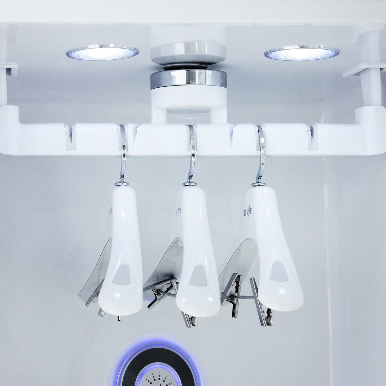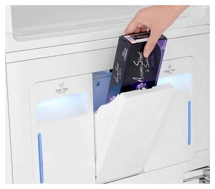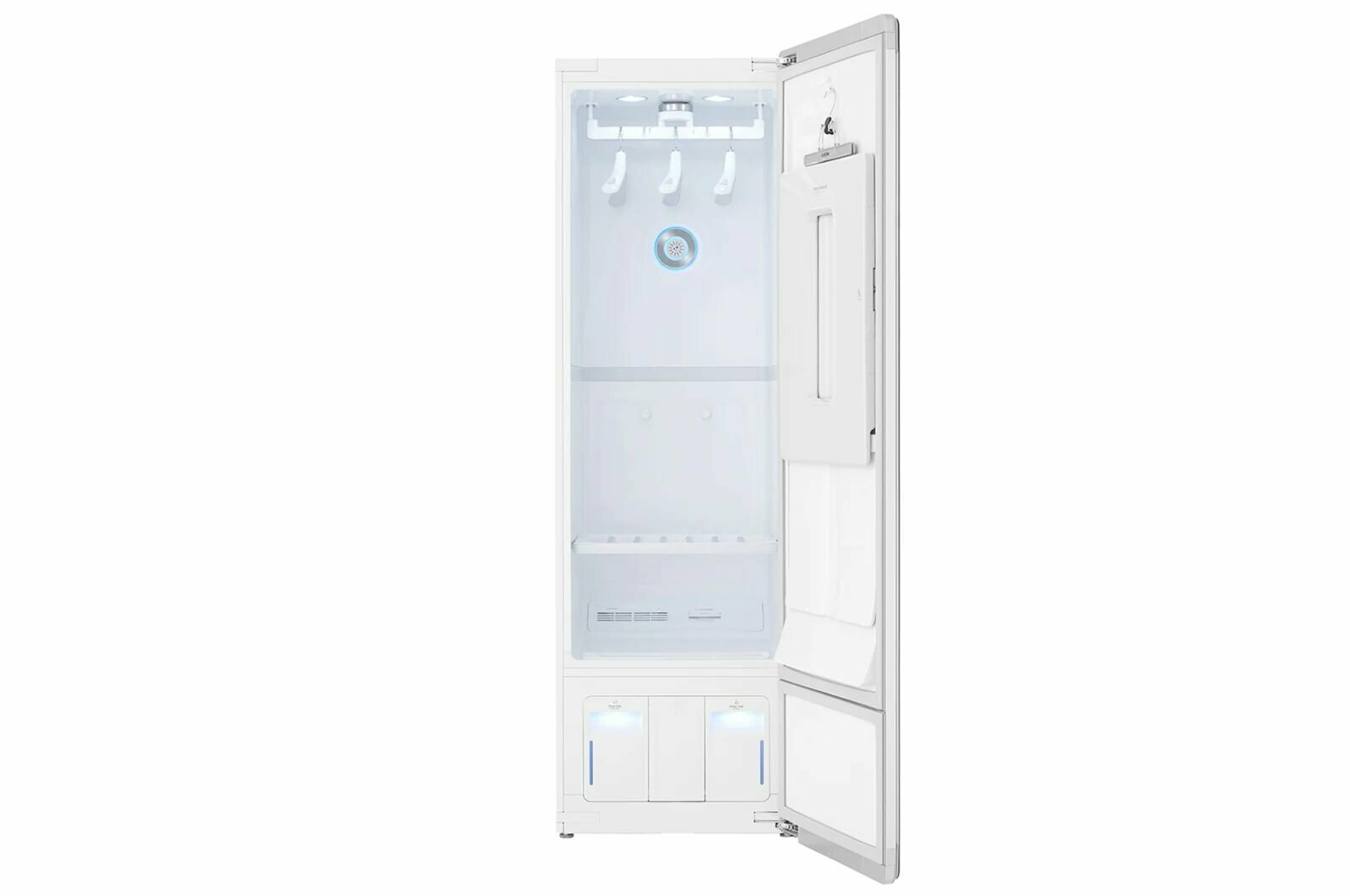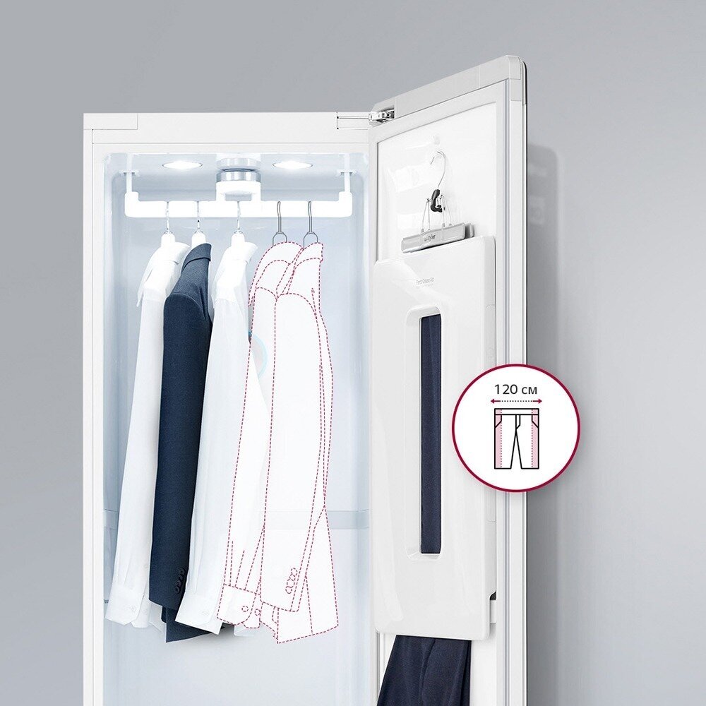 Количество программ - 4; Встроенный теплообменник; Сенсорная панель; Сбор конденсата в резервуар; Индикация времени до конца программы; Ворсовый фильтр; Индикация режима работы; Мобильная диагностика; Управление со смартфона; Воздухоотвод; Отвод конденсата в дренаж; Дополнительно в комплекте: вешалка для рубашек - 3 шт., пресс для брюк - 1 шт., лоток, вешалка для брюк - 1 шт
