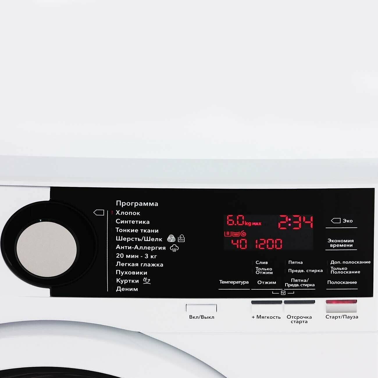 выбор скорости отжима, выбор температуры стирки, контроль баланса, контроль за уровнем пены, отложенный старт, сигнал окончания стирки