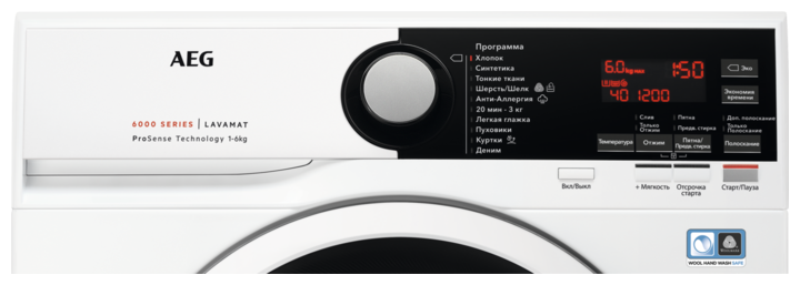 быстрая стирка, предварительная стирка, стирка верхней одежды, стирка пуховых вещей, стирка шелка, стирка шерсти, удаление пятен, экономичная программа