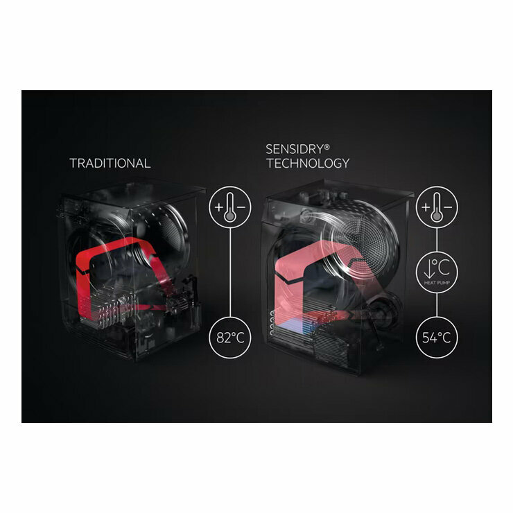 автоматическая коррекция времени стирки ProSense, функция SensiDry, система ОKOKombi, система контроля температуры и движений барабана DualSense, технология Heat Pump, EcoValve, защита от сминания, панель управления на английском языке