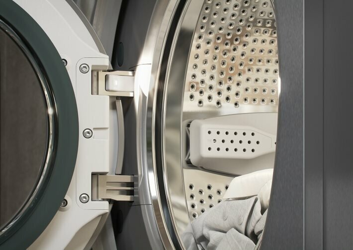 Меняйте уровень воды, пользуйтесь опцией антисминания, запускайте предварительную стирку для сильно загрязнённых вещей, включайте суперполоскание для защиты чувствительной кожи от остатков моющего средства, откладывайте старт на 0,5-24 часа и подбирайте оптимальное количество порошка с автоматическим помощником дозирования Dose Assist.