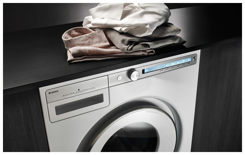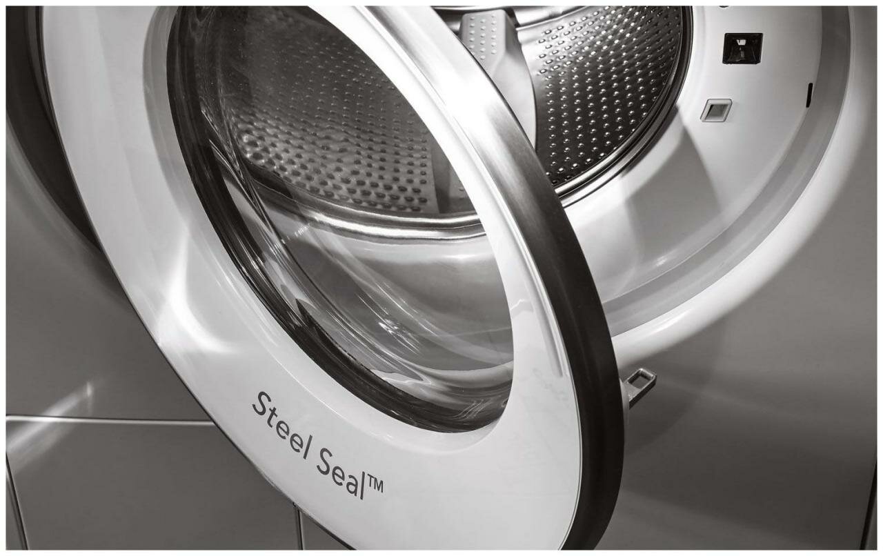 профессиональная конструкция Quattro, уникальный цельнометаллический фронт, чугунные противовесы, шланг подачи воды из специального полипропилена Pex, индукционный мотор, система ProWash