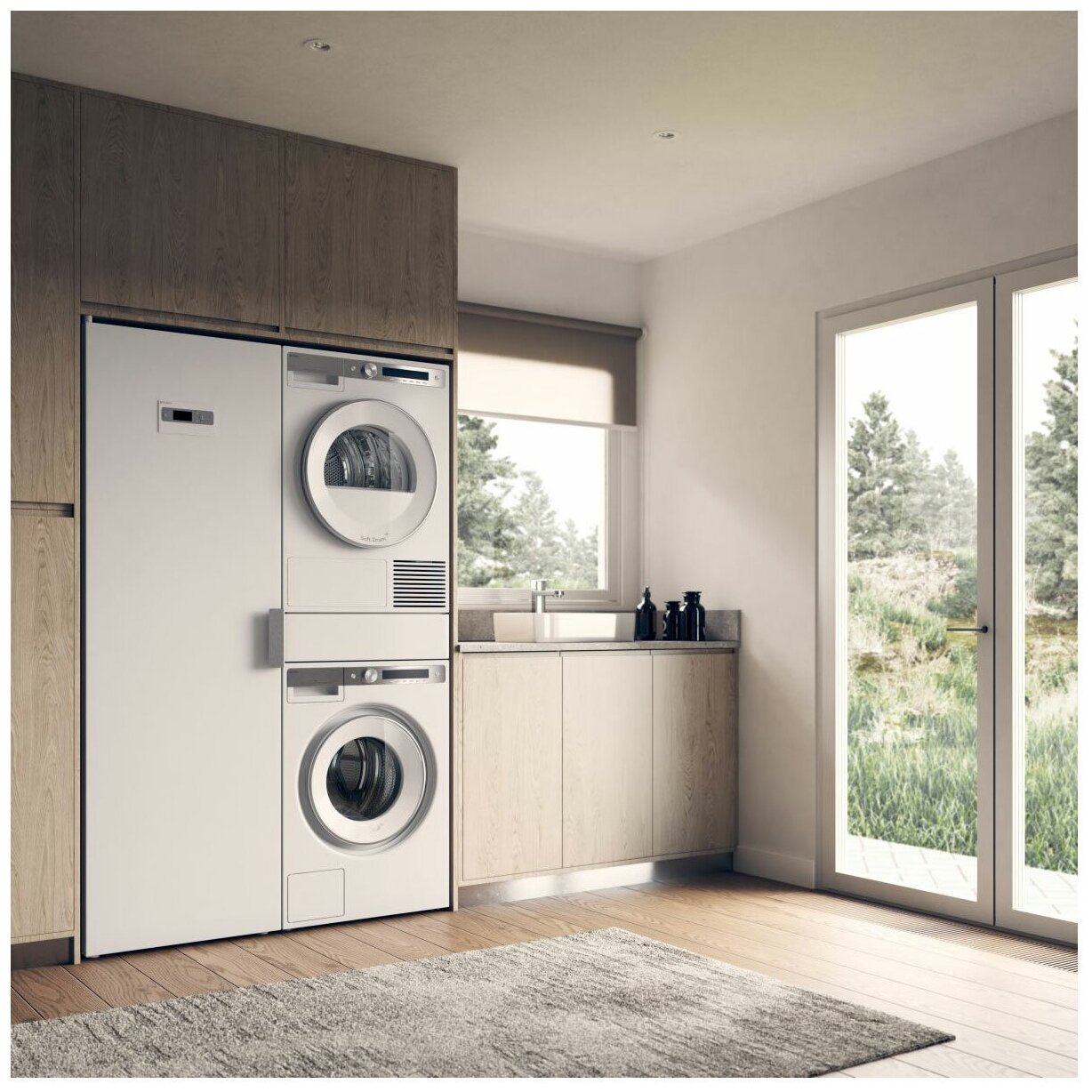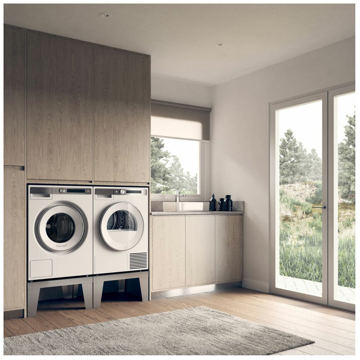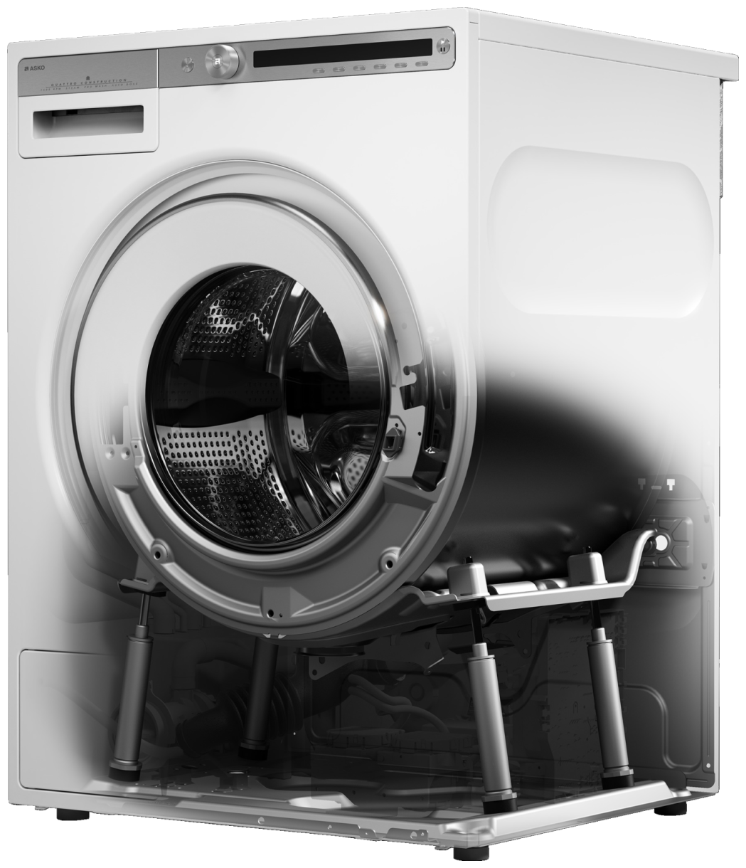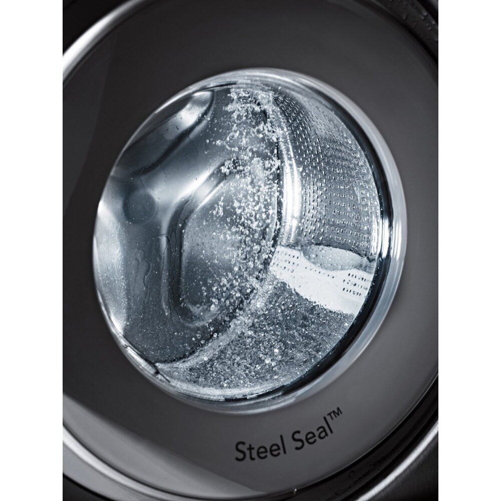 профессиональная конструкция Quattro, уникальный цельнометаллический фронт, чугунные противовесы, шланг подачи воды из специального полипропилена Pex, индукционный мотор, система ProWash
