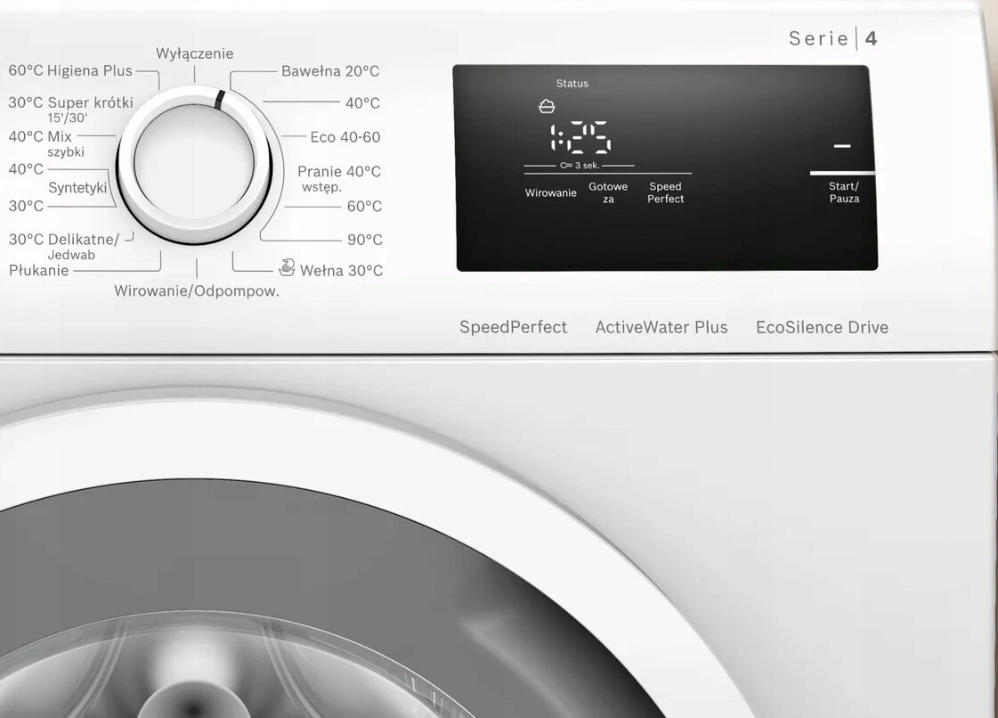 система управления водой ActiveWater Система управления водой ActiveWater Система управления водой ActiveWater встиральных машинах Bosch применяется для оптимизации объема заливаемой воды, электроэнергии ипродолжительности программы стирки путем точного определения количества белья, загруженного вбарабан. Информация овесе белья, атакже отипе ткани, передается всистему управления отвысокоточных многопозиционных датчиков-сенсоров, которые контролируют поступление воды вбак. Вихчисле имеется прессостат— датчик уровня воды, который посылает сигнал наблок управления, как только давление воды достигает определенного значения. Поэтому сигналу залив воды прекращается. Всистеме используется также проточный датчик, установленный назаливном шланге. Пообъему залитой воды рассчитывается нетолько вес загруженного белья, ноитип ткани, так как разные материалы способны по-разному впитывать воду. Для лучшего смачивания белья применяется запатентованный механизм впрыскивания. Таким образом, количество воды никогда небудет превышать норму: сокращение потребления может быть довольно значительным идостигать 12-15%. Добавление воды— например, для дополнительного полоскания— также производится автоматически. SpeedPerfect SpeedPerfect Опция SpeedPerfect встиральных машинах Siemens иBosch, начиная ссерии4, предназначается для значительного сокращения времени стирки (до40%) при сохранении неизменно превосходного результата иможет дополнительно подключаться при выборе некоторых режимов работы. Количество этапов стирки при этом остается неизменным ивключает собственно стирку, полоскание иотжим. Продолжительность работы сокращается засчет нагревания воды доболее высокой температуры иинтенсивного вращения барабана, так что опцию следует применять состорожностью инеиспользовать при стирке тонких иделикатных тканей, атакже при выборе экспресс-программ. Для добавления данной опции квыбранной программе служит специальная кнопка напанели управления. Внекоторых моделях эта кнопка выполняет две функции одновременно: кроме подключения SpeedPerfect, она предназначается для активации опции EcoPerfect, которая служит для экономии количества потребляемой электроэнергии. Последовательное нажатие кнопки переключает режимы, при этом напанели управления высвечивается соответствующий символ: для SpeedPerfect онпредставляет собой изображение секундомера.