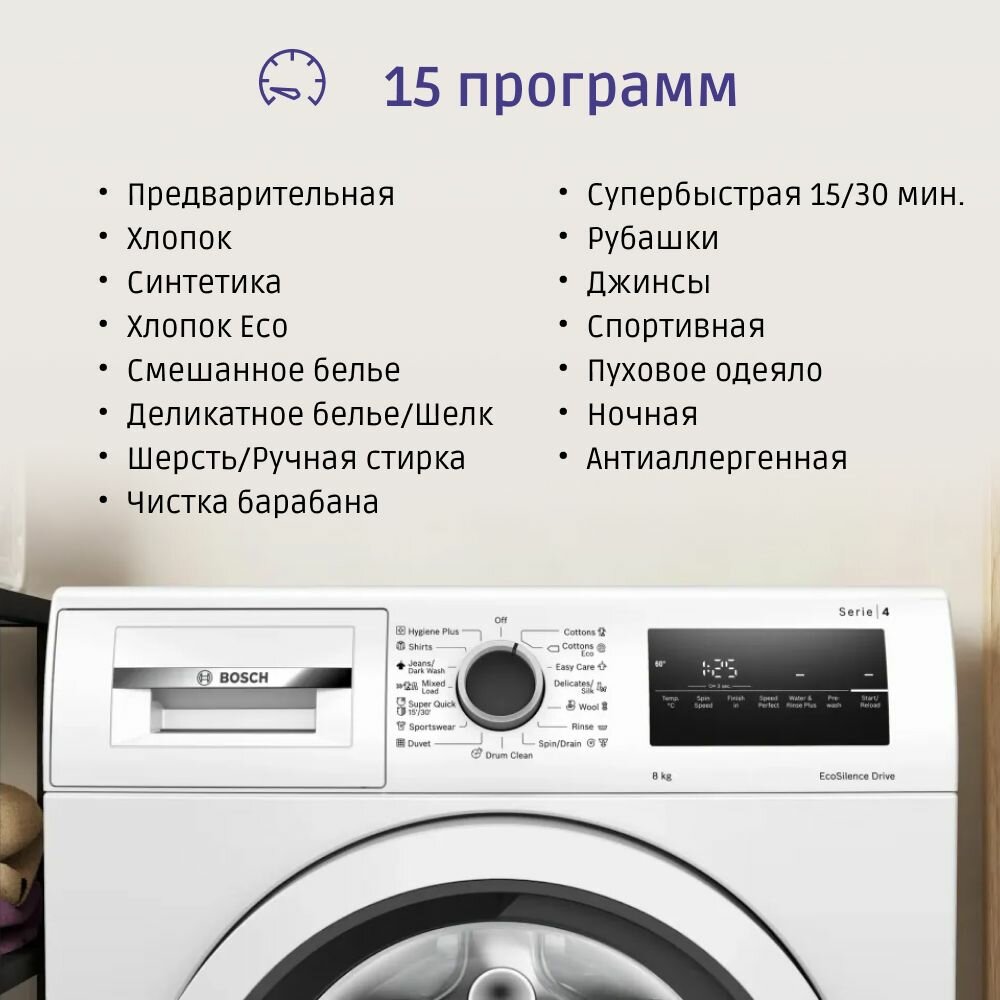 быстрая стирка, гипоаллергенная стирка, дополнительное полоскание, ежедневная стирка, замачивание, интенсивная стирка, ночной режим, отжим, отмена отжима, полоскание, предварительная стирка, ручная стирка, стирка верхней одежды, стирка деликатных тканей, стирка детских вещей, стирка джинсов, стирка одеяла, стирка пуховых вещей, стирка синтетики, стирка смешанных тканей, стирка спортивной одежды, стирка хлопка, стирка цветных вещей, стирка черных вещей, стирка шелка, стирка шерсти, экономичная программа, ECO, ДЖИНСЫ, СПОРТ, ШЕЛК, ШЕРСТЬ, Нет, Ночная стирка, Полоскание + отжим, Слив, Стирка изделий из джинсовой ткани, Стирка нижнего белья, Стирка рубашек, блузки/рубашки, смешанная/быстрая, спорт, стирка изделий из джинсовой ткани, стирка нижнего белья, стирка одеял, стирка рубашек, супер 15/30 мин, тонкое бельё/шёлк, тёмное бельё, хлопок эко, чувствительная
