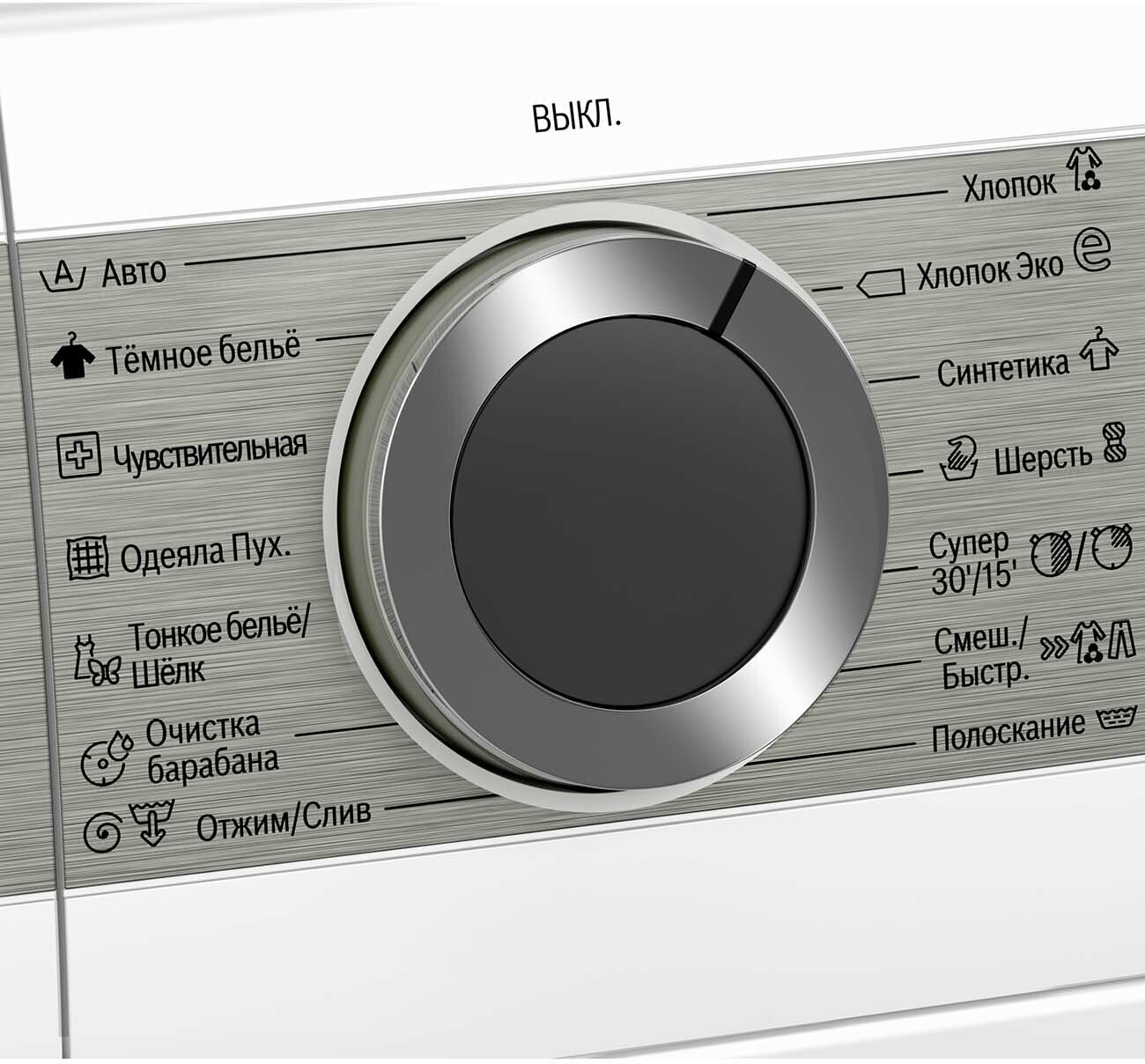 быстрая стирка, гипоаллергенная стирка, дополнительное полоскание, замачивание, отжим, полоскание, предварительная стирка, стирка верхней одежды, стирка деликатных тканей, стирка детских вещей, стирка одеяла, стирка пуховых вещей, стирка синтетики, стирка смешанных тканей, стирка хлопка, стирка цветных вещей, стирка шерсти, экономичная программа, авто, одеяла пуховые, очистка барабана, смешанная/быстрая, супер 15/30 мин, тонкое бельё/шёлк, тёмное бельё, хлопок эко, чувствительная