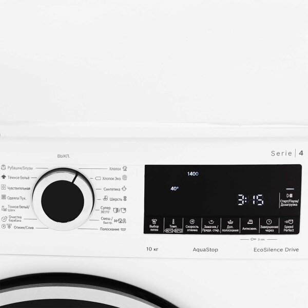 технология Antistain Технология Antistain Технология AntiStain— автоматическая система удаления пятен, реализованная встиральных машинах Bosch сфронтальной загрузкой. Как известно, разные виды пятен требуют разного подхода для ихполного исчезновения. Благодаря системе Antistain машина способна распознавать до16видов пятен иавтоматически настраивать для ихудаления основные параметры работы— такие, как температура, время замачивания, скорость вращения барабана. Для выведения загрязнений при этом ненужны дорогостоящие пятновыводители или другие дополнительные средства, атакже нетребуется отдельного предварительного замачивания белья. Вчисле загрязнений, скоторыми справляется эта технология— жировые пятна, следы крови, краски, травы, молока идетского питания, масла ишоколада, пятна отчая икофе, следы косметики. Неимеет значения, недавнее это пятно или застарелое. Отсутствие дополнительной химической обработки белья— большое преимущество при стирке детской одежды идля защиты оталлергии. Активировать AntiStain можно нажатием кнопки напанели управления после выбора основной программы. Машина сама подсказывает, совместимали данная опция спрограммой, выделяя кнопку подсветкой. непрерывная система дозирования воды по степени загрузки и типу ткани Непрерывная система дозирования воды по степени загрузки и типу ткани Непрерывная система дозирования воды постепени загрузки итипу ткани— технология, которая применяется, например, встиральных машинах производства Bosch иSiemens для улучшения качества стирки иэкономичного использования ресурсов. Степень загрузки белья вбарабане определяется при помощи датчика уровня воды— прессостата. Прессостат контролирует залив воды поеедавлению: как только оно достигает определенного уровня, замыкается переключатель, ивсистему управления отправляется сигнал одостаточном количестве воды. Исходя изобъема воды рассчитывается вес белья иприблизительно определяется тип ткани, что влияет напараметры стирки. Современные прессостаты способны определять до256 уровней воды вбарабане. Вторая составляющая системы— проточный датчик, непосредственно отвечающий заопределение количества заливаемой воды. Система работает непрерывно, постоянно отслеживая состояние белья вбарабане иподдерживания объем воды наоптимальном уровне. При необходимости— например, для улучшения полоскания— происходит дополнительный залив воды. Система управления при этом выдает рекомендации подозировке моющего средства, делая стирку еще эффективнее. SpeedPerfect SpeedPerfect Опция SpeedPerfect встиральных машинах Siemens иBosch, начиная ссерии4, предназначается для значительного сокращения времени стирки (до40%) при сохранении неизменно превосходного результата иможет дополнительно подключаться при выборе некоторых режимов работы. Количество этапов стирки при этом остается неизменным ивключает собственно стирку, полоскание иотжим. Продолжительность работы сокращается засчет нагревания воды доболее высокой температуры иинтенсивного вращения барабана, так что опцию следует применять состорожностью инеиспользовать при стирке тонких иделикатных тканей, атакже при выборе экспресс-программ. Для добавления данной опции квыбранной программе служит специальная кнопка напанели управления. Внекоторых моделях эта кнопка выполняет две функци