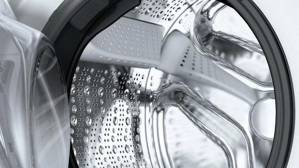 система управления водой ActiveWater Система управления водой ActiveWater Система управления водой ActiveWater встиральных машинах Bosch применяется для оптимизации объема заливаемой воды, электроэнергии ипродолжительности программы стирки путем точного определения количества белья, загруженного вбарабан. Информация овесе белья, атакже отипе ткани, передается всистему управления отвысокоточных многопозиционных датчиков-сенсоров, которые контролируют поступление воды вбак. Вихчисле имеется прессостат— датчик уровня воды, который посылает сигнал наблок управления, как только давление воды достигает определенного значения. Поэтому сигналу залив воды прекращается. Всистеме используется также проточный датчик, установленный назаливном шланге. Пообъему залитой воды рассчитывается нетолько вес загруженного белья, ноитип ткани, так как разные материалы способны по-разному впитывать воду. Для лучшего смачивания белья применяется запатентованный механизм впрыскивания. Таким образом, количество воды никогда небудет превышать норму: сокращение потребления может быть довольно значительным идостигать 12-15%. Добавление воды— например, для дополнительного полоскания— также производится автоматически. технология Antistain Технология Antistain Технология AntiStain— автоматическая система удаления пятен, реализованная встиральных машинах Bosch сфронтальной загрузкой. Как известно, разные виды пятен требуют разного подхода для ихполного исчезновения. Благодаря системе Antistain машина способна распознавать до16видов пятен иавтоматически настраивать для ихудаления основные параметры работы— такие, как температура, время замачивания, скорость вращения барабана. Для выведения загрязнений при этом ненужны дорогостоящие пятновыводители или другие дополнительные средства, атакже нетребуется отдельного предварительного замачивания белья. Вчисле загрязнений, скоторыми справляется эта технология— жировые пятна, следы крови, краски, травы, молока идетского питания, масла ишоколада, пятна отчая икофе, следы косметики. Неимеет значения, недавнее это пятно или застарелое. Отсутствие дополнительной химической обработки белья— большое преимущество при стирке детской одежды идля защиты оталлергии. Активировать AntiStain можно нажатием кнопки напанели управления после выбора основной программы. Машина сама подсказывает, совместимали данная опция спрограммой, выделяя кнопку подсветкой. 4D Wash System 4D Wash System Технология 4DWash используется встиральных машинах производства Bosch новейшей серии 8. Эта технология разработана для лучшего отстирывания белья при полной загрузке барабана, атакже для удаления особенно стойких исильных загрязнений. Принцип еедействия заключается вускоренном вращении барабана всамом начале цикла— так называемой фазе Spin Wash. Скорость вращения может достигать 150 оборотов вминуту, при этом белье равномерно распределяется постенкам барабана, так что вцентре образуется свободное место, своеобразный туннель. Наповерхность прижатого кстенкам белья дополнительно подается напрямую сильная струя воды срастворенным вней заранее моющим средством. Происходит активное смачивание белья без пропущенных участков, азагрязнения успешно удаляются под напором струи. Дальнейшие этапы стирки производятся обычно, всоответствии свыбранной программой. 