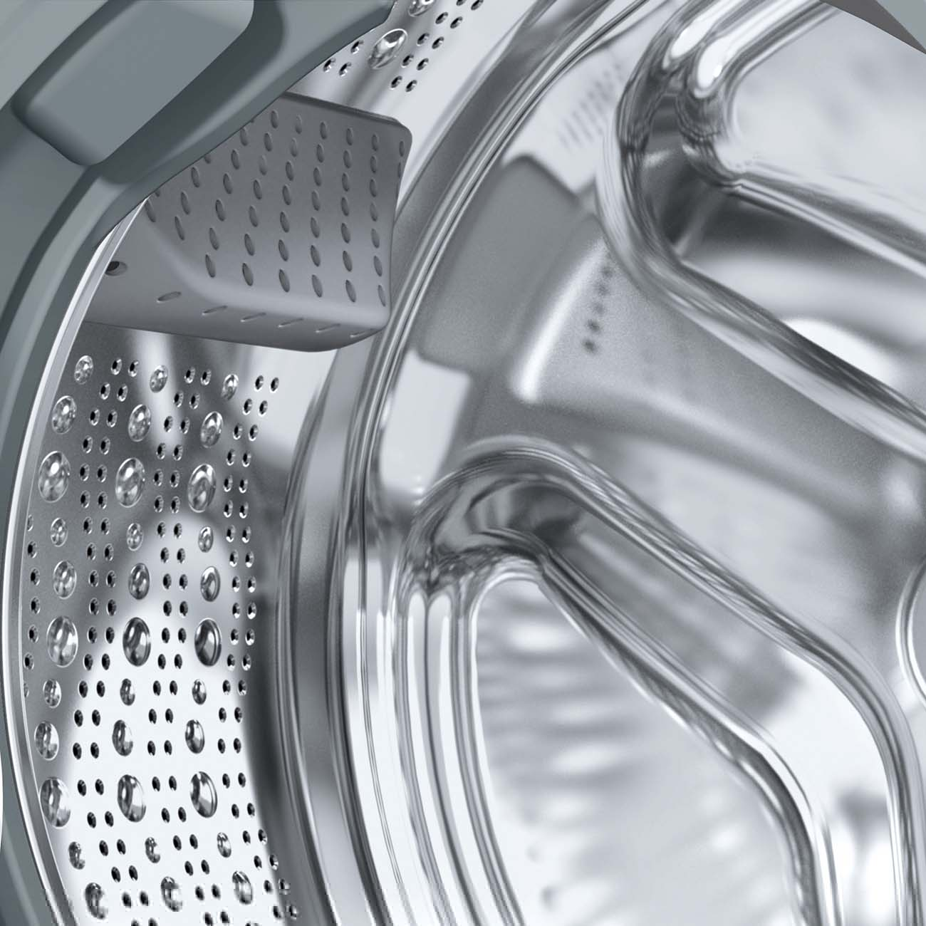 система управления водой ActiveWater Система управления водой ActiveWater Система управления водой ActiveWater встиральных машинах Bosch применяется для оптимизации объема заливаемой воды, электроэнергии ипродолжительности программы стирки путем точного определения количества белья, загруженного вбарабан. Информация овесе белья, атакже отипе ткани, передается всистему управления отвысокоточных многопозиционных датчиков-сенсоров, которые контролируют поступление воды вбак. Вихчисле имеется прессостат— датчик уровня воды, который посылает сигнал наблок управления, как только давление воды достигает определенного значения. Поэтому сигналу залив воды прекращается. Всистеме используется также проточный датчик, установленный назаливном шланге. Пообъему залитой воды рассчитывается нетолько вес загруженного белья, ноитип ткани, так как разные материалы способны по-разному впитывать воду. Для лучшего смачивания белья применяется запатентованный механизм впрыскивания. Таким образом, количество воды никогда небудет превышать норму: сокращение потребления может быть довольно значительным идостигать 12-15%. Добавление воды— например, для дополнительного полоскания— также производится автоматически. технология Antistain Технология Antistain Технология AntiStain— автоматическая система удаления пятен, реализованная встиральных машинах Bosch сфронтальной загрузкой. Как известно, разные виды пятен требуют разного подхода для ихполного исчезновения. Благодаря системе Antistain машина способна распознавать до16видов пятен иавтоматически настраивать для ихудаления основные параметры работы— такие, как температура, время замачивания, скорость вращения барабана. Для выведения загрязнений при этом ненужны дорогостоящие пятновыводители или другие дополнительные средства, атакже нетребуется отдельного предварительного замачивания белья. Вчисле загрязнений, скоторыми справляется эта технология— жировые пятна, следы крови, краски, травы, молока идетского питания, масла ишоколада, пятна отчая икофе, следы косметики. Неимеет значения, недавнее это пятно или застарелое. Отсутствие дополнительной химической обработки белья— большое преимущество при стирке детской одежды идля защиты оталлергии. Активировать AntiStain можно нажатием кнопки напанели управления после выбора основной программы. Машина сама подсказывает, совместимали данная опция спрограммой, выделяя кнопку подсветкой. автоматическое дозирование воды по степени загрузки Автоматическое дозирование воды по степени загрузки Автоматическое дозирование воды постепени загрузки встиральных машинах способствует экономии ресурсов, позволяет улучшить качество отстирывания исократить продолжительность стирки. Взвешивание сухого белья иопределение степени загрузки вмоделях Bosch осуществляется при помощи инновационной технологии ActiveWater Plus, которая использует наиболее совершенный иточный метод измерения. Вес белья рассчитывается системой управления, исходя изусилия вращения инапряжения, которое вырабатывает при движении поинерции двигатель спрямым приводом. Для большего веса белья требуется большее усилие. Взвешивание производится непосредственно перед запуском цикла стирки, причем вода небудет заливаться вбак, если максимальное значение веса загрузки превышено. Вэтом случае появи