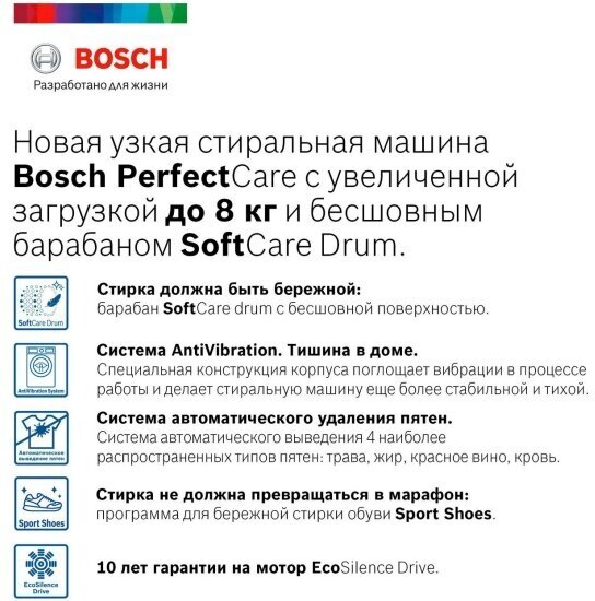 конструкция корпуса PerfectFit, AntiVibration - дизайн боковых поверхностей для уменьшения вибраций, специальный клапан внутри основного отсека кюветы для удобного залива и точной дозировки жидких моющих средств, индикация передозировки моющего средства