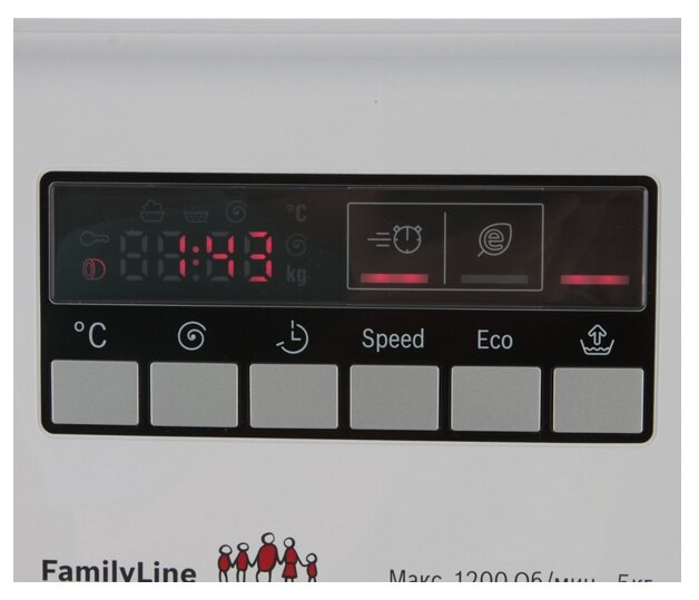 выбор скорости отжима, контроль за уровнем пены, прямой впрыск, сигнал окончания стирки