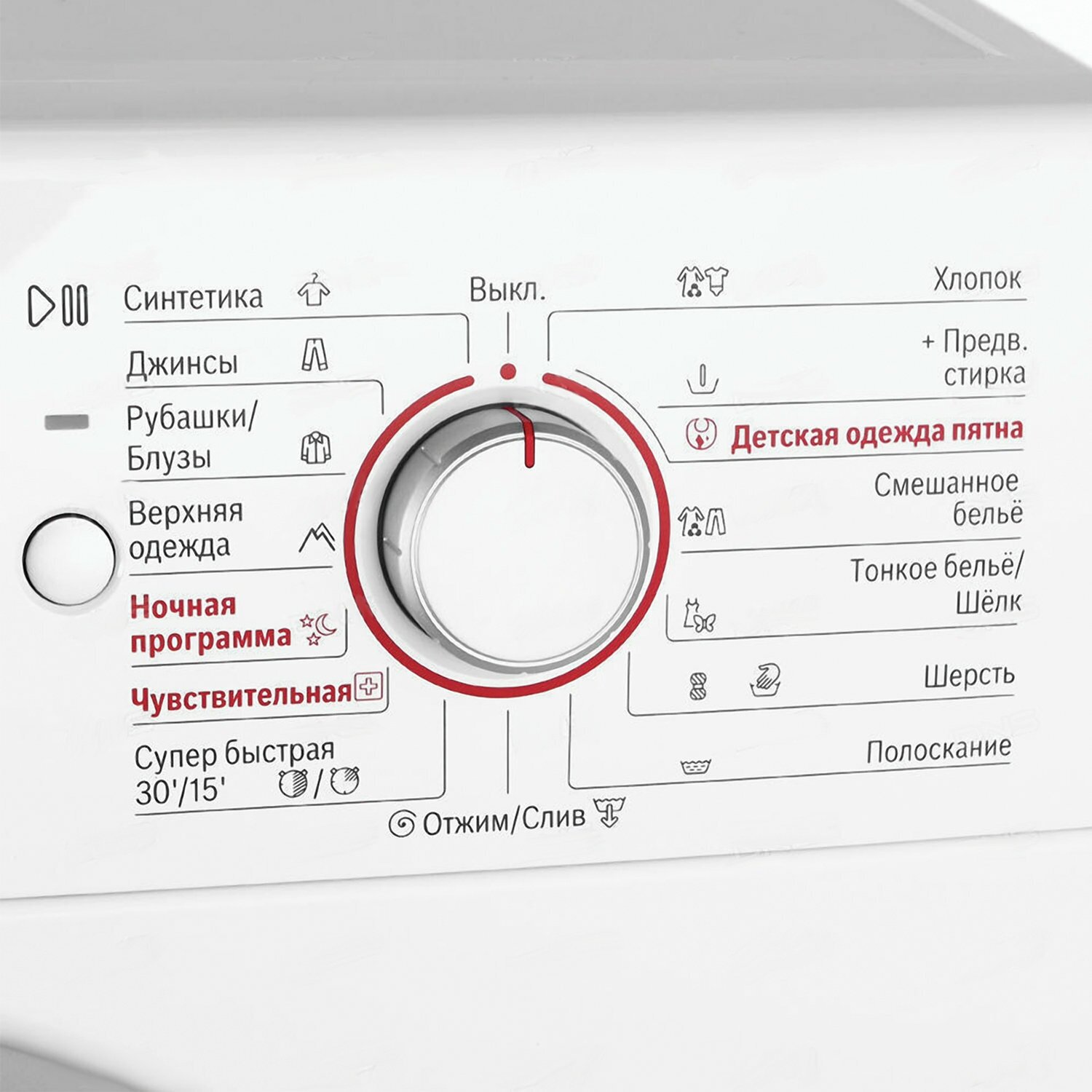 быстрая стирка, предварительная стирка, стирка в большом количестве воды, стирка верхней одежды, стирка деликатных тканей, стирка детских вещей, стирка джинсов, программа удаления пятен, супер-полоскание