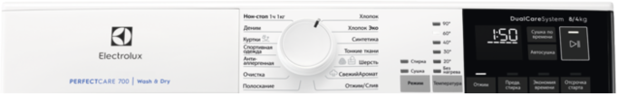 быстрая стирка, гипоаллергенная стирка, дополнительное полоскание, отжим, отмена отжима, полоскание, предварительная стирка, стирка верхней одежды, стирка деликатных тканей, стирка джинсов, стирка синтетики, стирка спортивной одежды, стирка хлопка, стирка шелка, стирка шерсти, удаление пятен, экономичная программа, Стирка изделий из джинсовой ткани, деним, куртки, нон-стоп 1 ч 1 кг, очистка, свежий аромат, тонкие ткани, хлопок эко