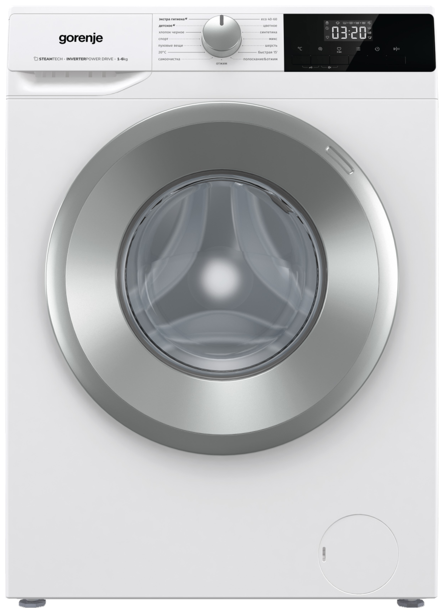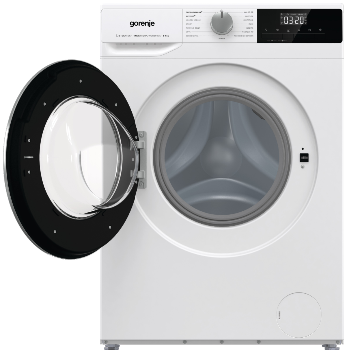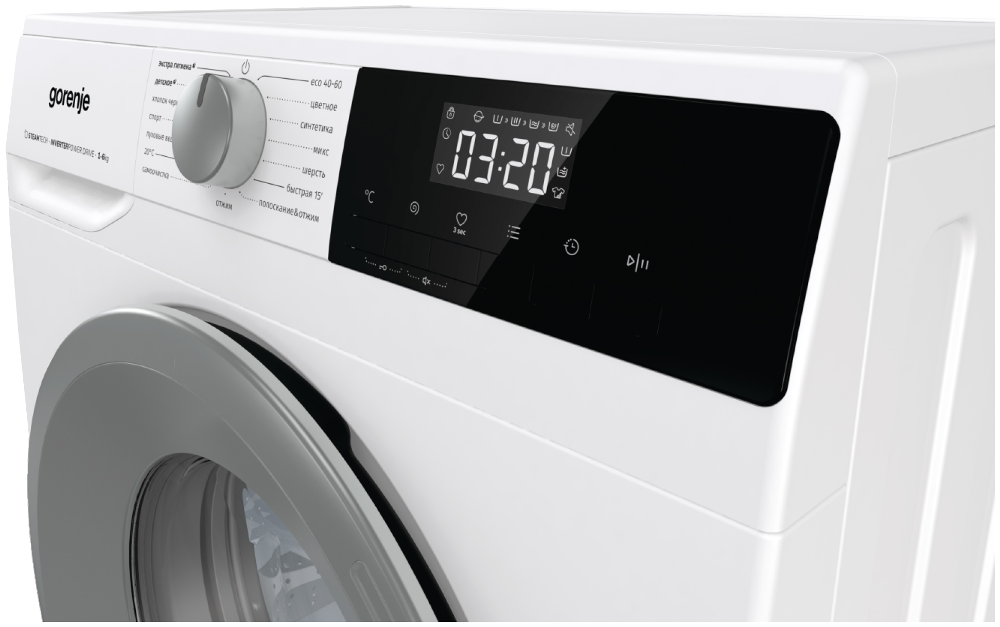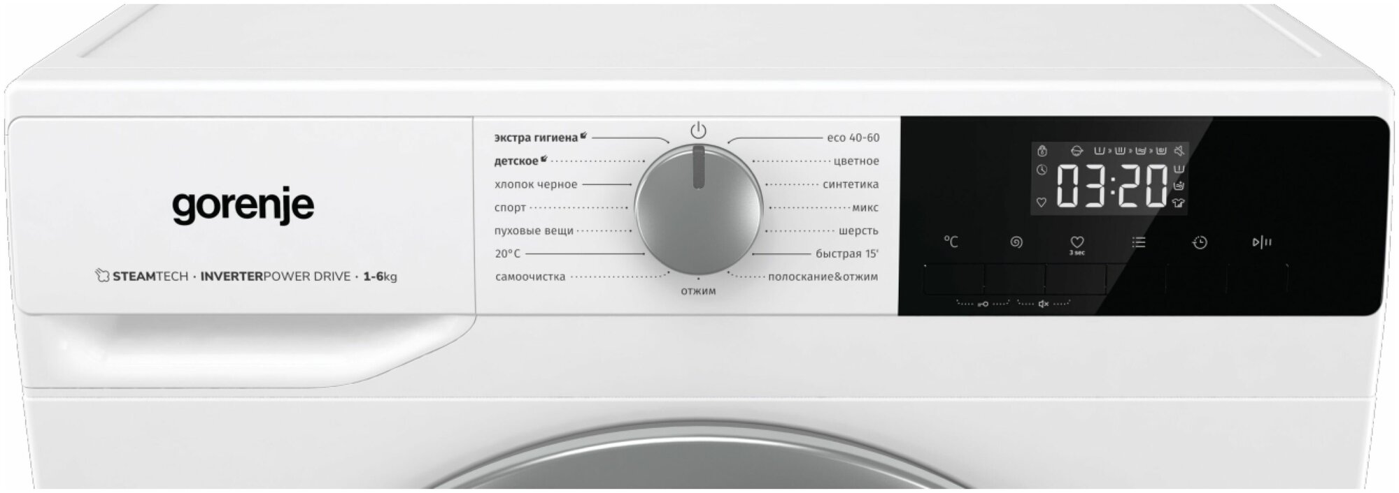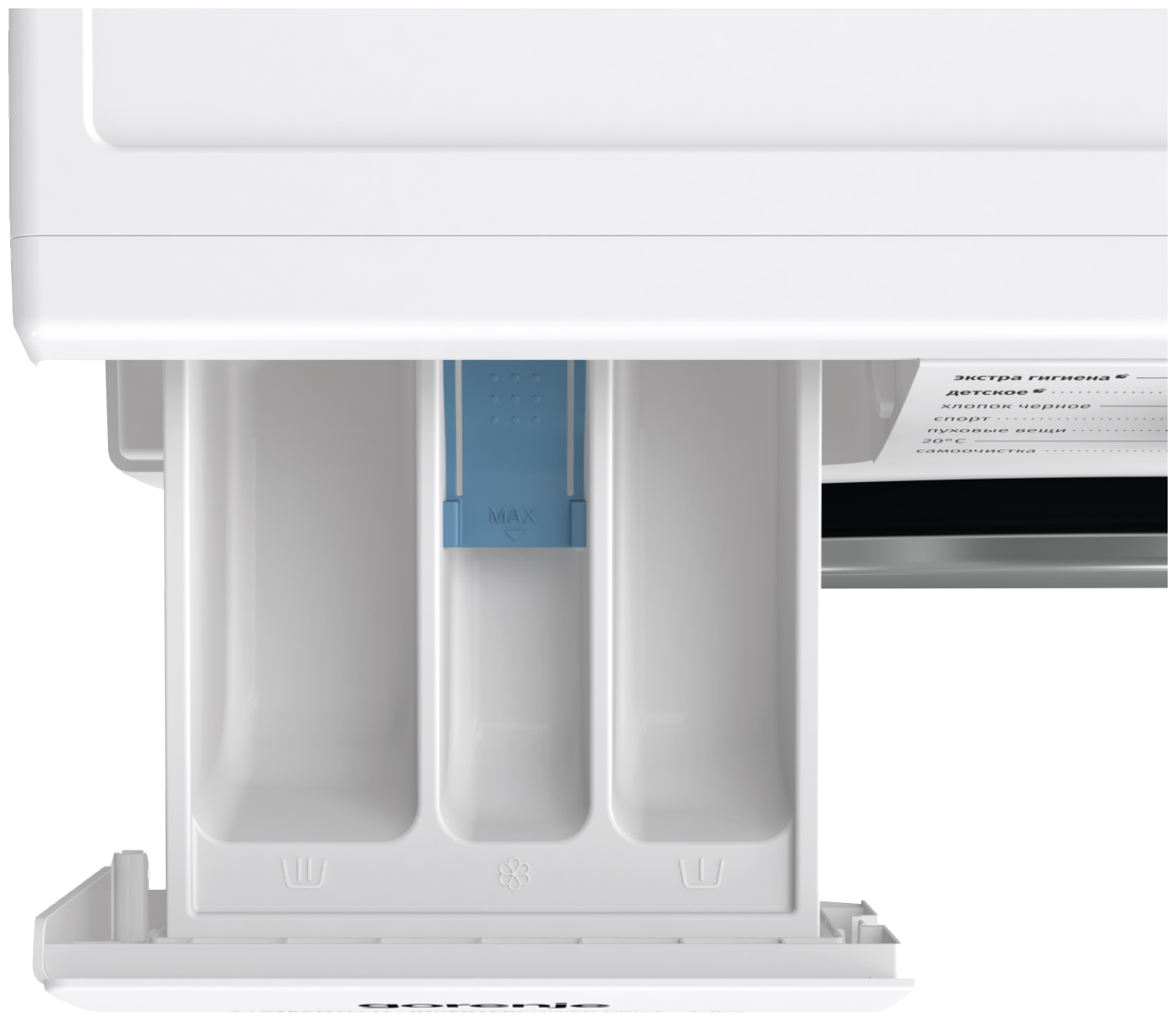 сенсор уровня воды, дозатор стиральных средств с тремя отделениями; холодная стирка (15°C), программа самоочистки; обработка паром SteamTech; защита от перелива