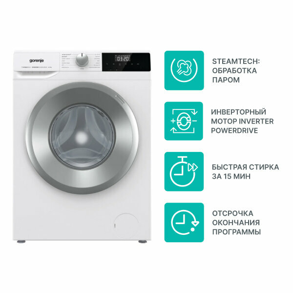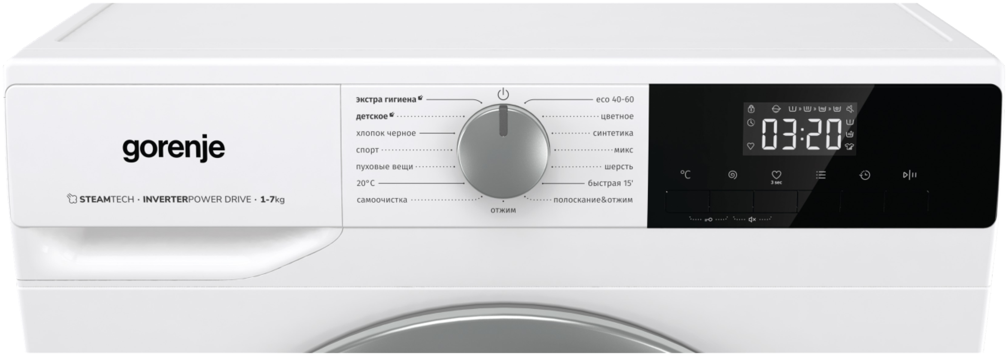 дозатор стиральных средств с тремя отделениями; сенсор уровня воды; SteamTech (обработка паром); холодная стирка (15°C); защита от перелива; программа самоочистки
