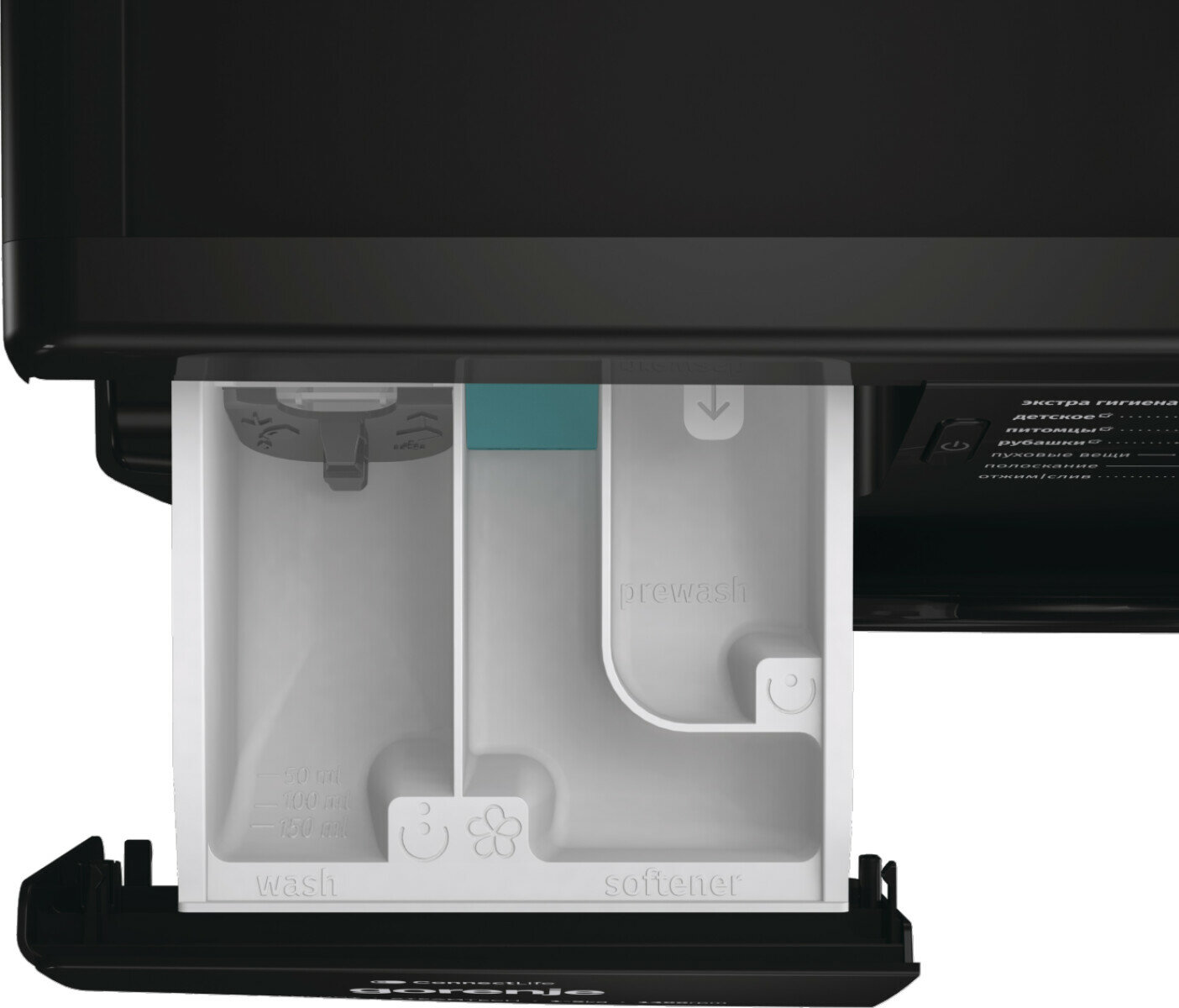 дисплей, открывание люка на 180 градусов, открывание люка налево, отсек для жидкого порошка, Рельефная поверхность