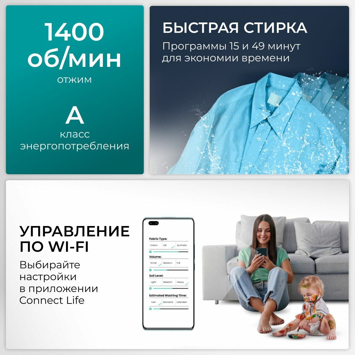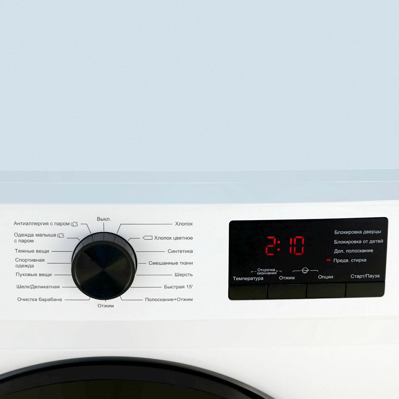 дисплей, открывание люка налево, подключение к горячей воде, подсветка барабана