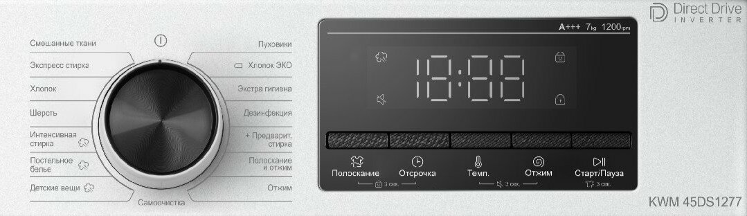 быстрая стирка, отжим, полоскание, предварительная стирка, стирка детских вещей, стирка пуховых вещей, стирка смешанных тканей, стирка хлопка, стирка шерсти, 15