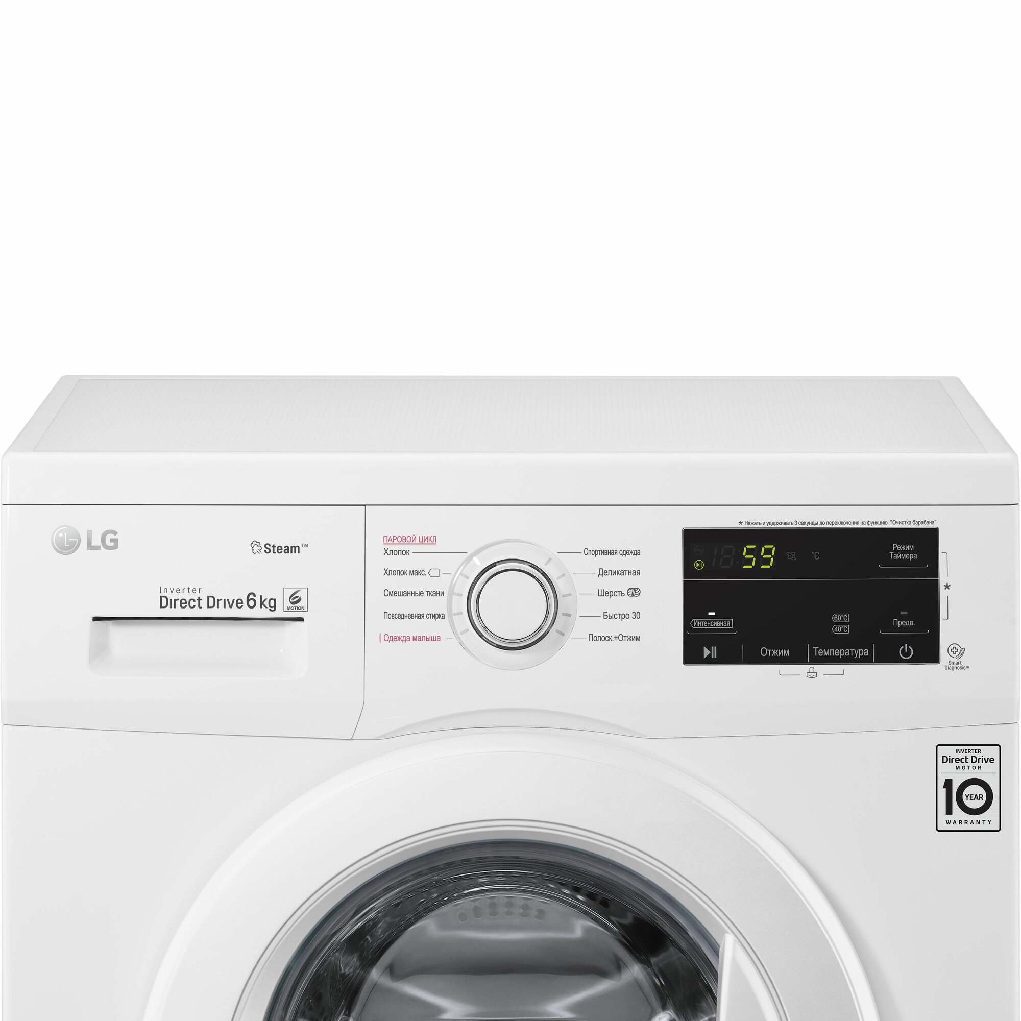 автовзвешивание, автоматическая дозировка моющего средства, выбор скорости отжима, выбор температуры стирки, интеллектуальное управление стиркой, контроль баланса, контроль за уровнем пены, отложенный старт, очистка барабана, пузырьковая стирка, сигнал окончания стирки, 19, 6 движений заботы, Звуковой сигнал, Интенсивная стирка, Отключение звукового сигнала, Отмена отжима, Предварительная стирка, блокировка управления, инверторный двигатель, интенсивная стирка, мобильная диагностика Smart Diagnosis, отключение звукового сигнала, пауза, предварительная стирка, регулируемые ножки - 10 мм, режим таймера, стирка с паром