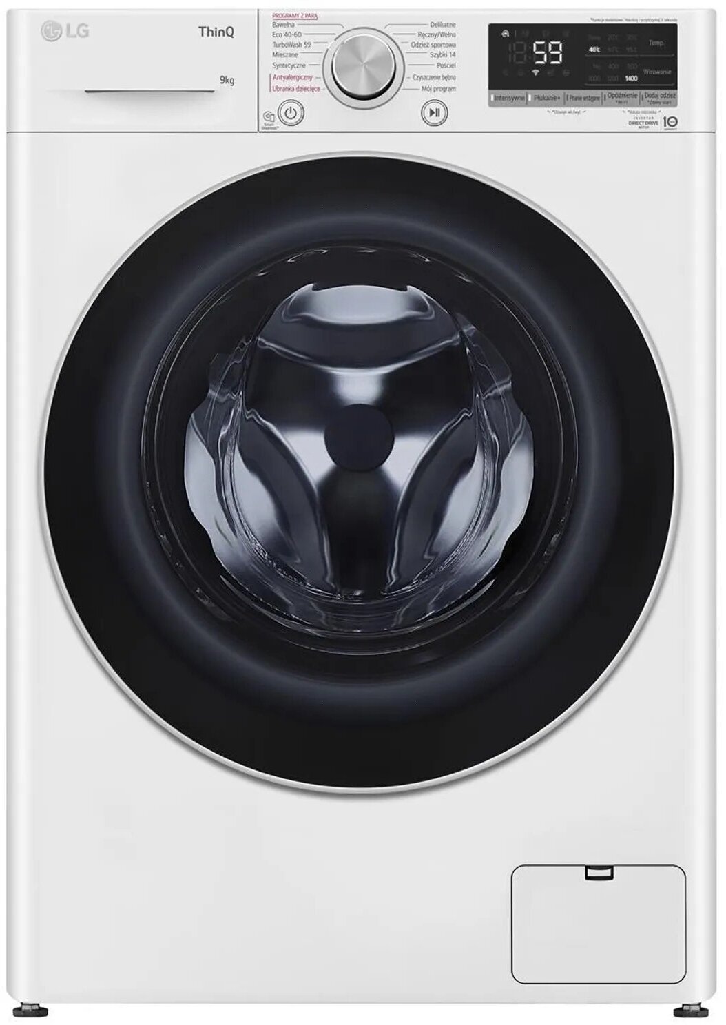 автовзвешивание, интеллектуальное управление стиркой, контроль баланса, контроль за уровнем пены, отложенный старт, очистка барабана, установка времени завершения стирки