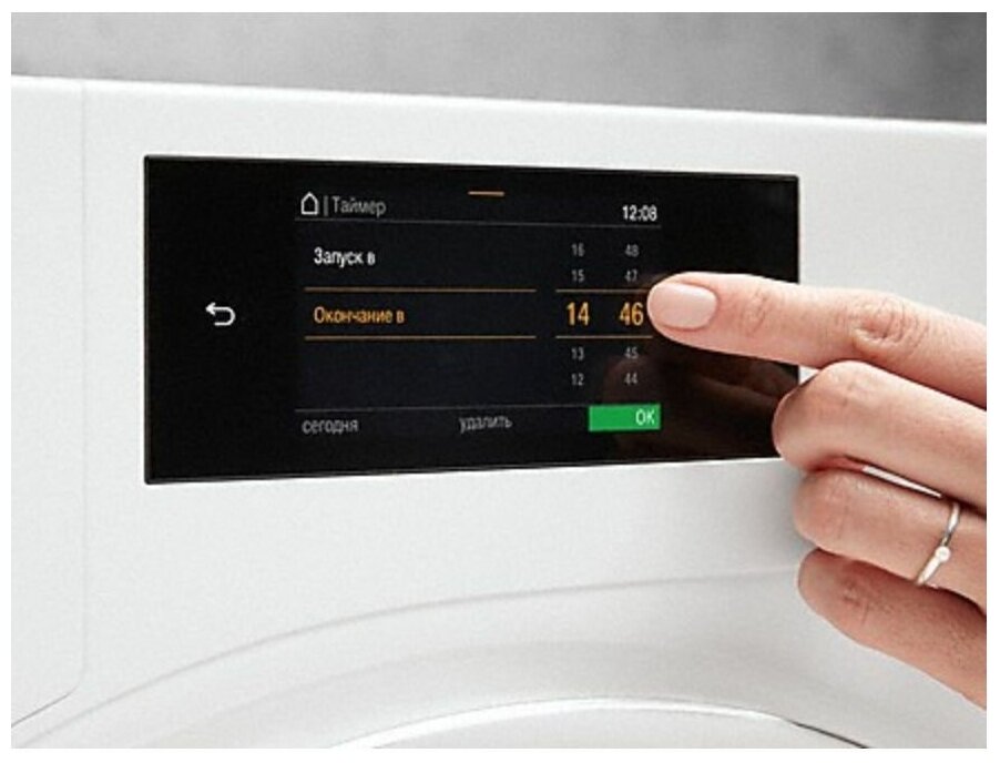 Модель Миле WEG675 WCS облегчает глажку вместе с технологией PreIroning. Панель управления наклонена на 5 градусов, благодаря чему легче рассмотреть показания на экране DirectSensor. Запускать и настраивать циклы стирки удобно посредством поворотного переключателя и сенсоров. При отсрочке старта вы увидите, сколько осталось времени до начала.