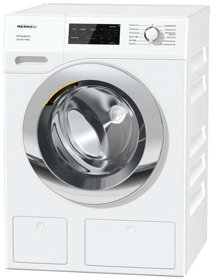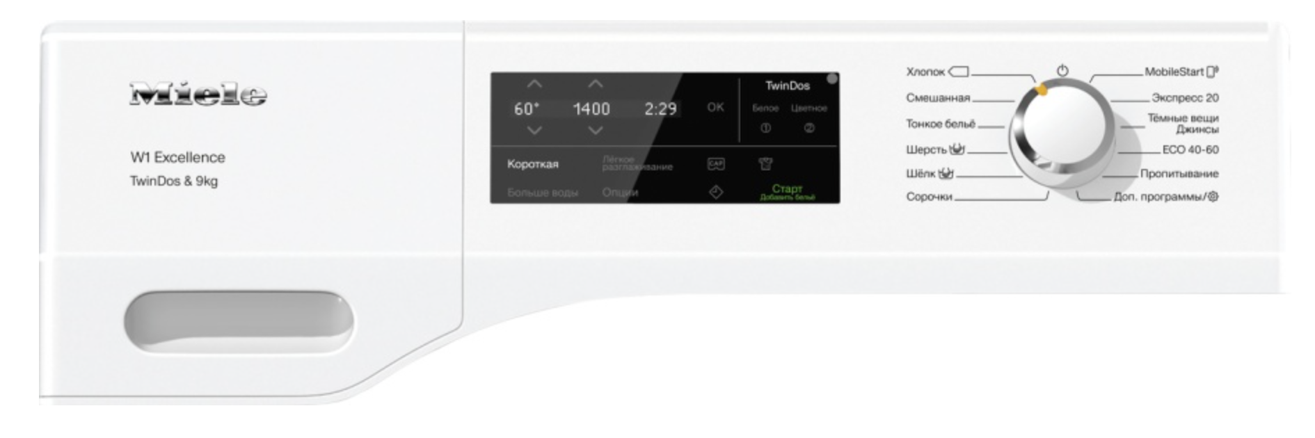 - Система дозирования TwinDos собирает информацию о типе ткани, уровне загрузки и степени загрязнения. На их основе этих данных распределяется моющее средство, не допуская напрасных трат.