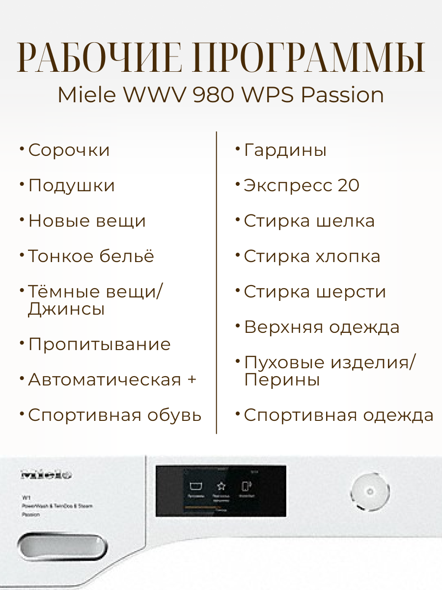 Стиральная машина MIELE WWV 980 WPS, белый, инструкция - 1 штука