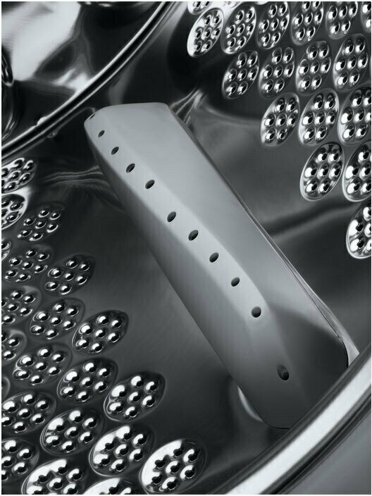 технология EcoValve; режимы: свежий аромат + пар, анти аллергия, очистка; Time Manager; двигатель инверторный с постоянными магнитами; предохранители А: 10; регулируемые ножки; поддон в днище; очистка от ворса; датчики: расходометр; устройство защиты от протечек: прессостат; длина шнура 1,8 м; конденсационная система сушки: жидкость конденсируется внутри машины и сразу отводится в слив; контроль сушки: авто + сушка по времени; остаточная влажность после отжима: 0; потребляемая мощность 2200 Вт; энергопотребление за цикл с сушкой 5.44 кВтч