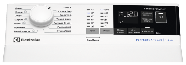 автоматическое позиционирование барабана, дисплей, отсек для жидкого порошка