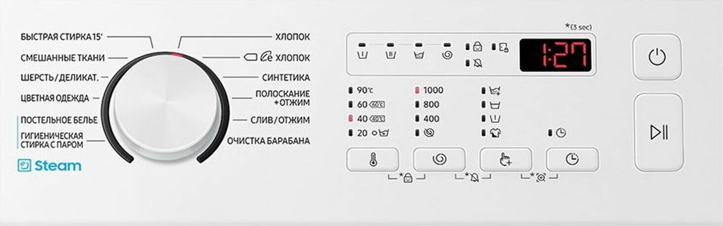 быстрая стирка, замачивание, интенсивная стирка, отмена отжима, стирка деликатных тканей, стирка синтетики, стирка смешанных тканей, стирка хлопка, стирка шерсти, экономичная программа, Полоскание + отжим, Цветное белье