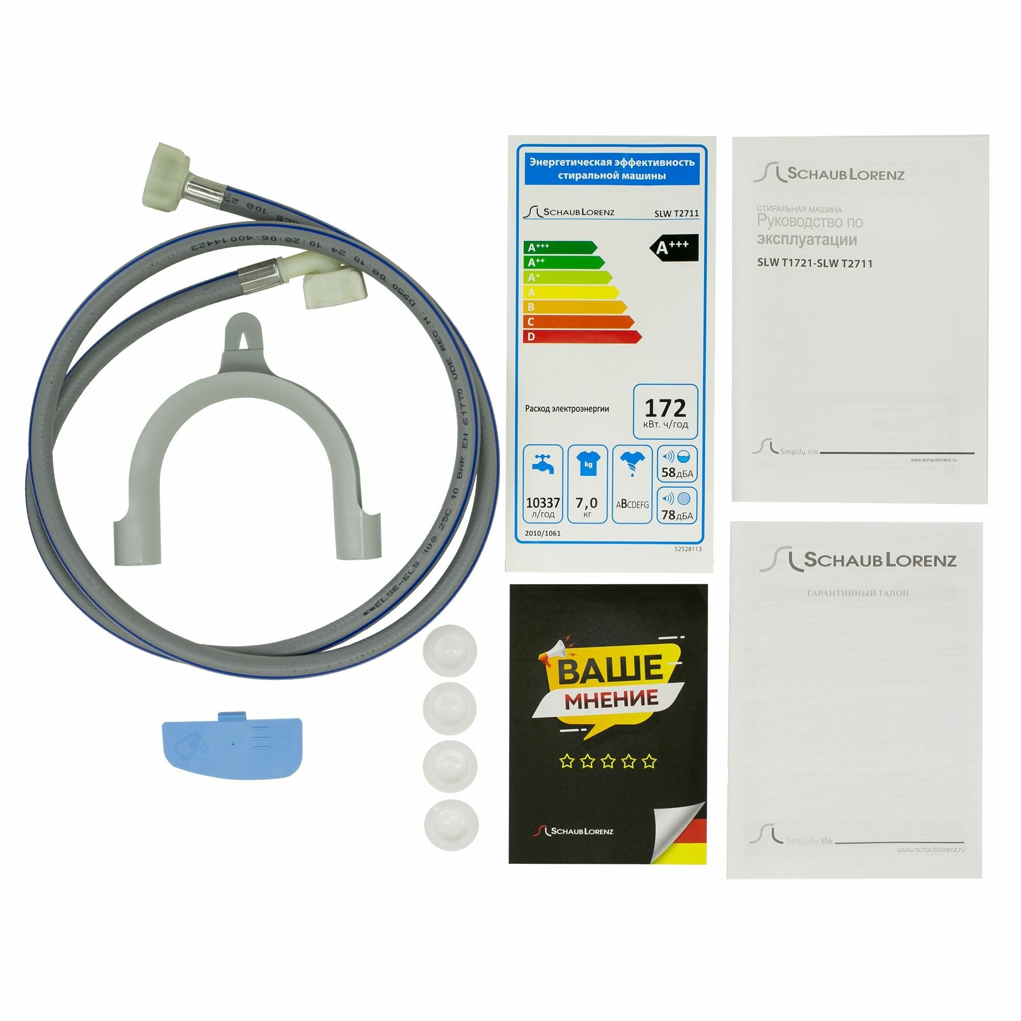 Шланг подачи воды, Сливной шланг, Инструкция по эксплуатации, Пластиковый держатель для сливного шланга