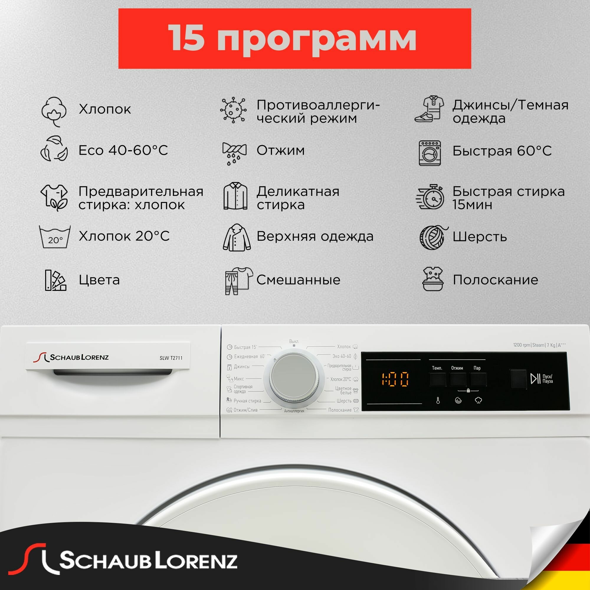быстрая стирка, гипоаллергенная стирка, ежедневная стирка, отжим, полоскание, предварительная стирка, ручная стирка, стирка деликатных тканей, стирка джинсов, стирка смешанных тканей, стирка спортивной одежды, стирка хлопка, стирка цветных вещей, стирка шерсти, экономичная программа, Стирка изделий из джинсовой ткани, Цветное белье, быстрая стирка 15 мин/12 мин, повседневная стирка 60 мин, ручная стирка/деликатная, хлопок (20/40/60), эко 40° с/60