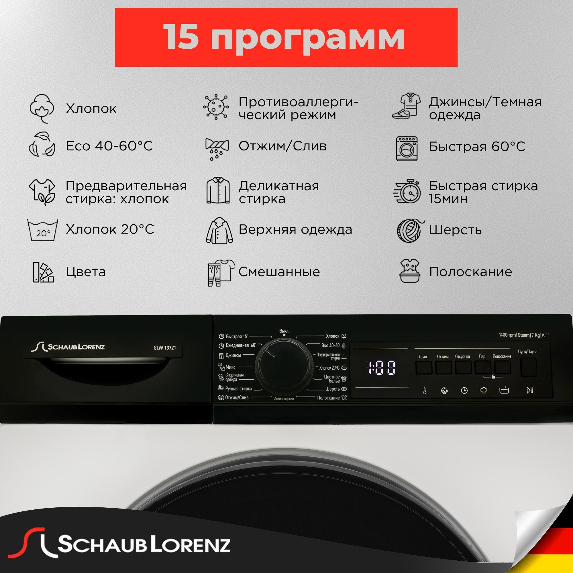 контроль баланса, контроль за уровнем пены, отложенный старт, Отмена отжима, Уменьшение времени стирки