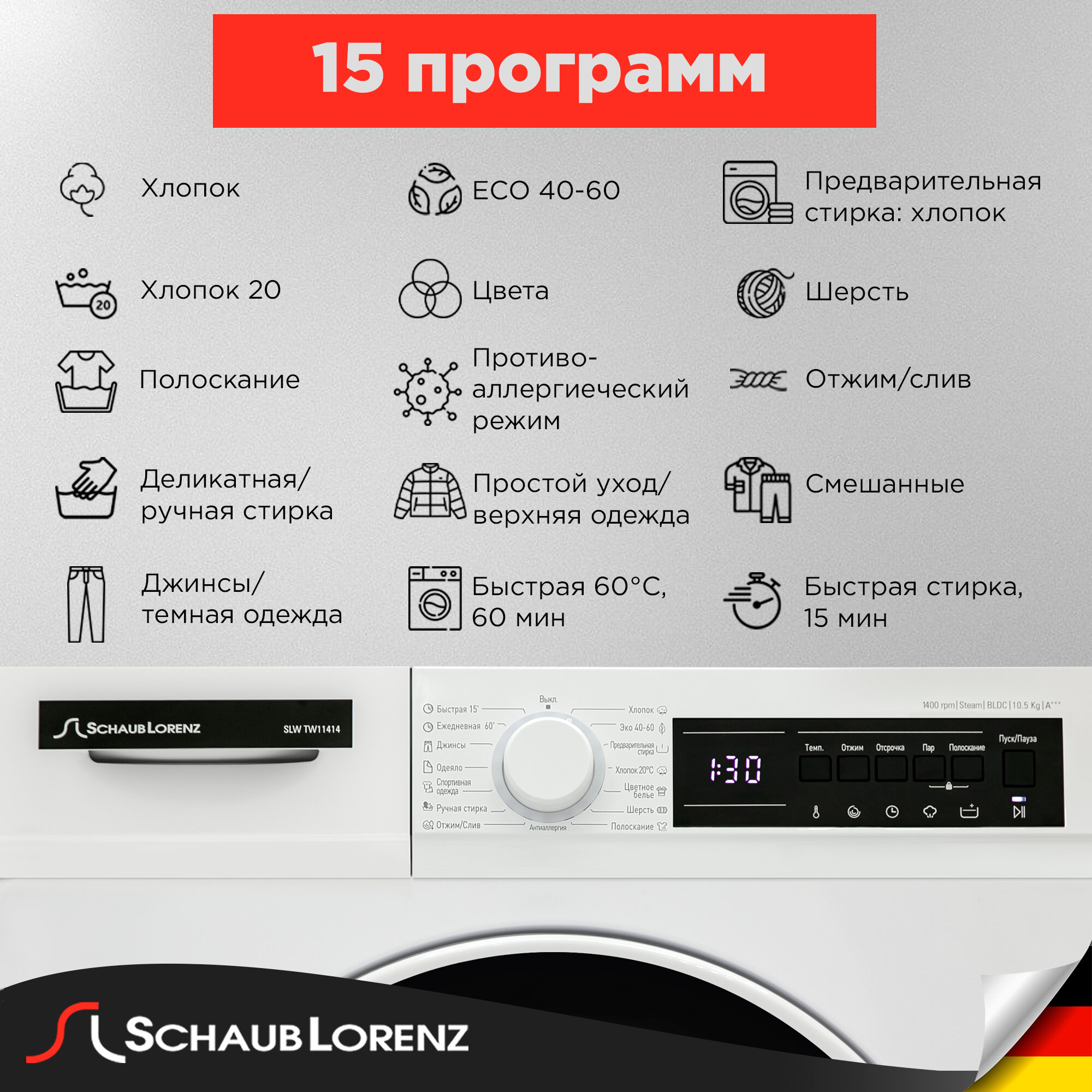 быстрая стирка, гипоаллергенная стирка, ежедневная стирка, отжим, полоскание, предварительная стирка, ручная стирка, стирка деликатных тканей, стирка джинсов, стирка пуховых вещей, стирка смешанных тканей, стирка спортивной одежды, стирка хлопка, стирка цветных вещей, стирка шерсти, экономичная программа, Быстрая стирка 15 мин/12 мин, Повседневная стирка 60 мин, Ручная стирка/Деликатная, Хлопок (20/40/60), Цветное белье, Эко 40° С/60, экономичная п